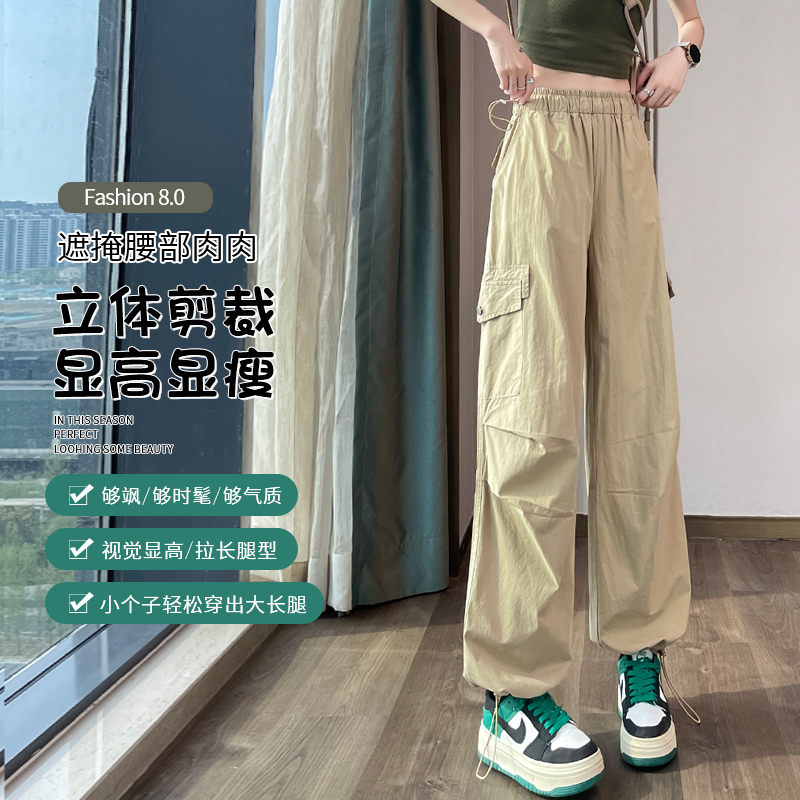 夏季美式春秋工装裤女粉色薄款运动冲锋裤小个子休闲速干新款大码