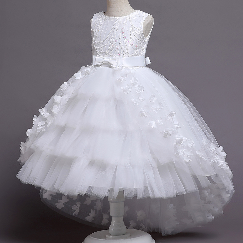 公主裙走秀婚纱女童礼服拖尾花边蕾丝蓬蓬裙花童宴会表演裙