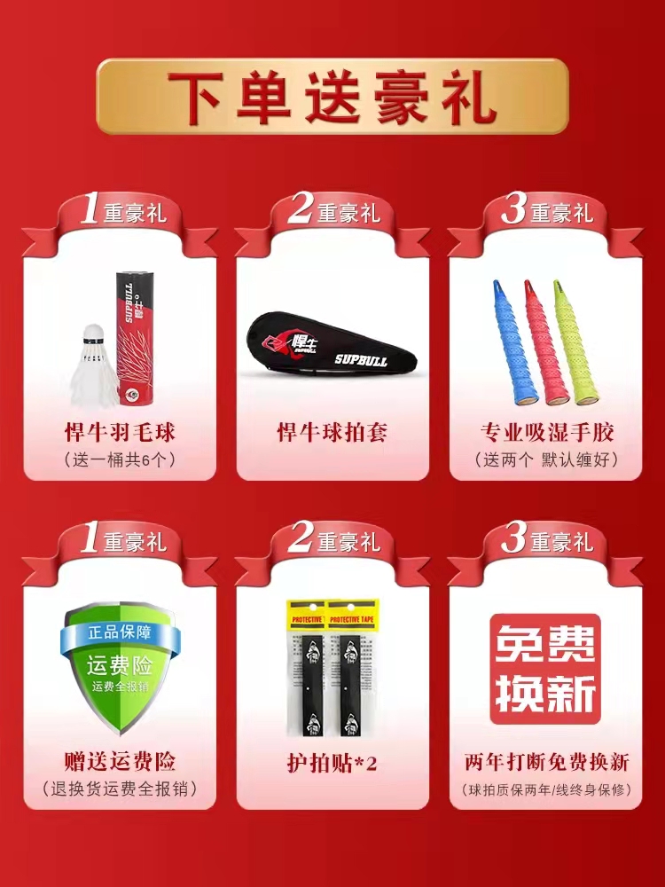 新款悍牛羽毛球拍全4u8u超轻碳素