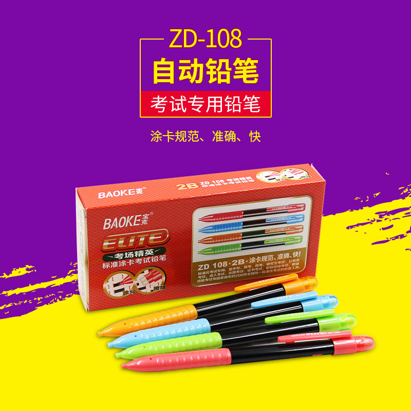 宝克 ZD-108 涂卡铅笔 考试专用铅笔 2B笔 彩色笔杆 多色 12支装