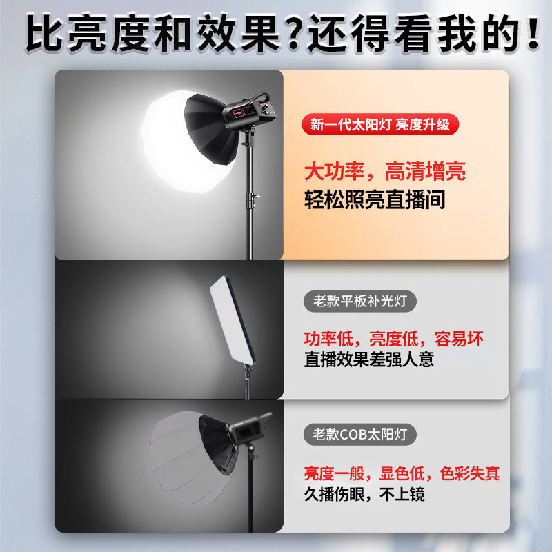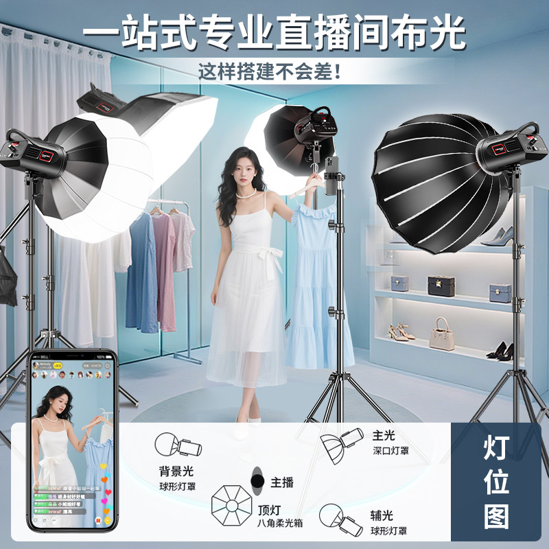 直播补光灯主播专业专用LED室内拍照摄影网红美颜嫩肤发丝背景直播间氛围柔光球形深口柔光箱常亮打光太阳灯