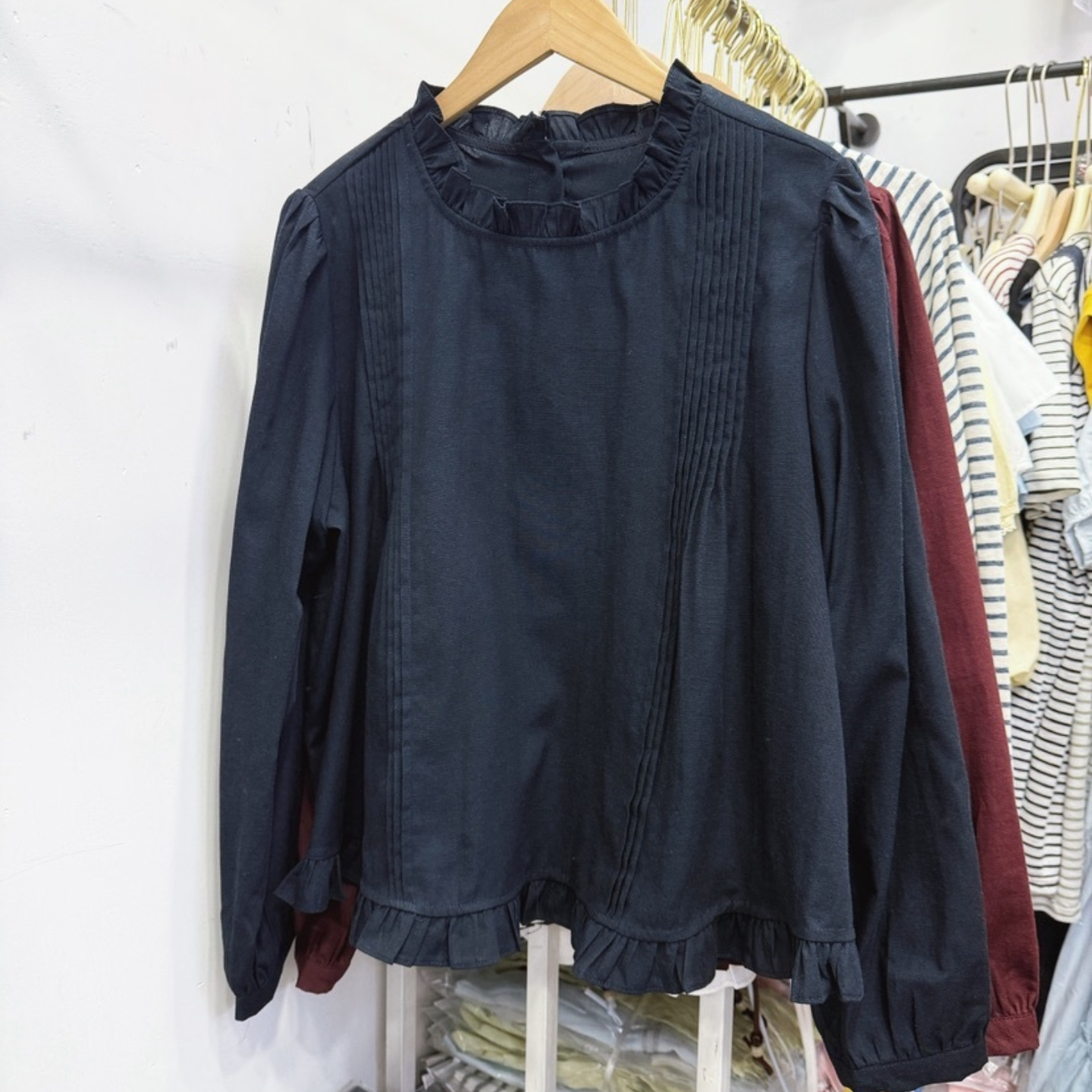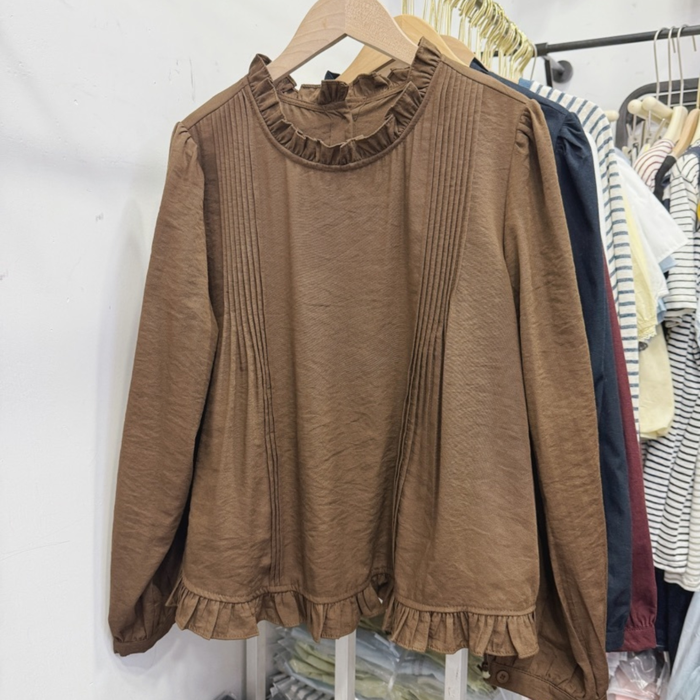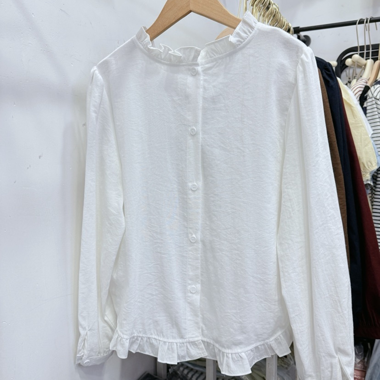 四季青2025新款宽松长袖衬衫女秋别致法式木耳边甜美压褶简约上衣