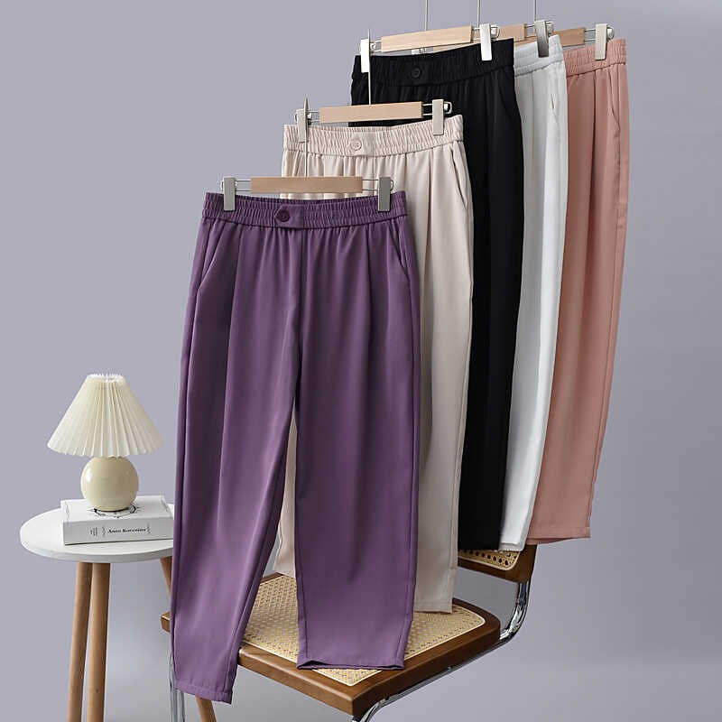 大码女裤春夏装松紧腰宽松显瘦一粒扣哈伦裤胖mm九分西装休闲裤