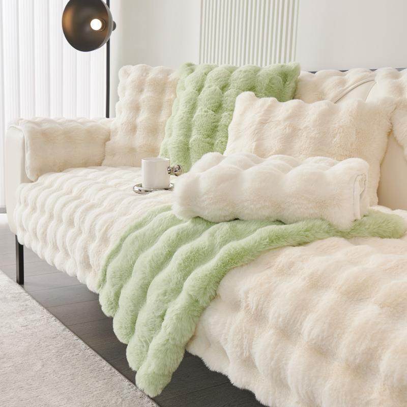 新款直销新款兔兔绒网红沙发垫冬季加厚兔毛绒坐垫防滑皮沙发套罩