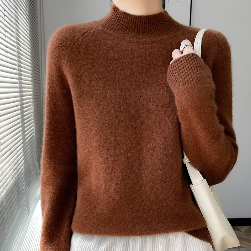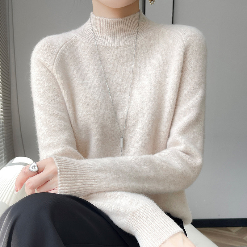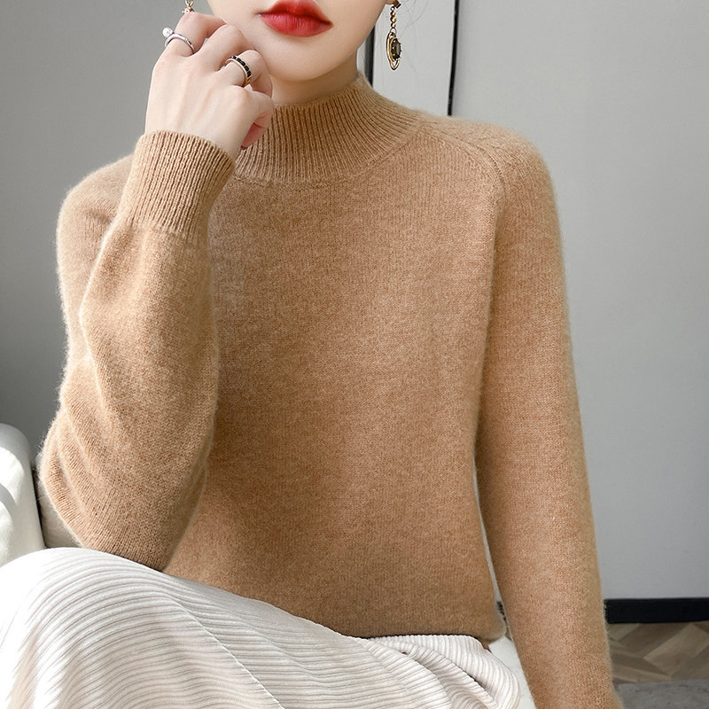 加厚半高领羊毛衫女100 纯羊毛针织打底衫宽松秋冬季洋气羊绒毛衣