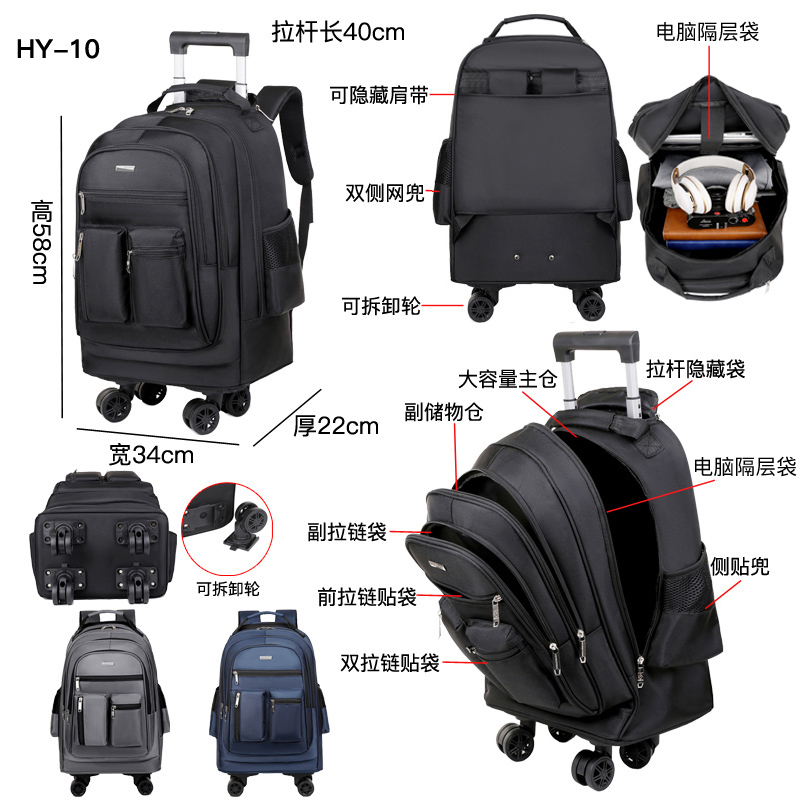 双肩背包万向轮可拆卸拉杆行李包多口袋大容量登机包大学生通勤包