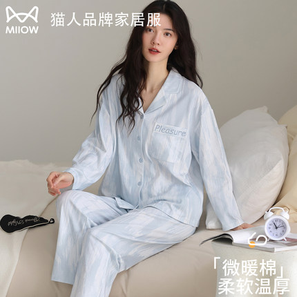 猫人纯棉睡衣女2026新款秋冬季简约宽松休闲可外穿家居服柔软套装