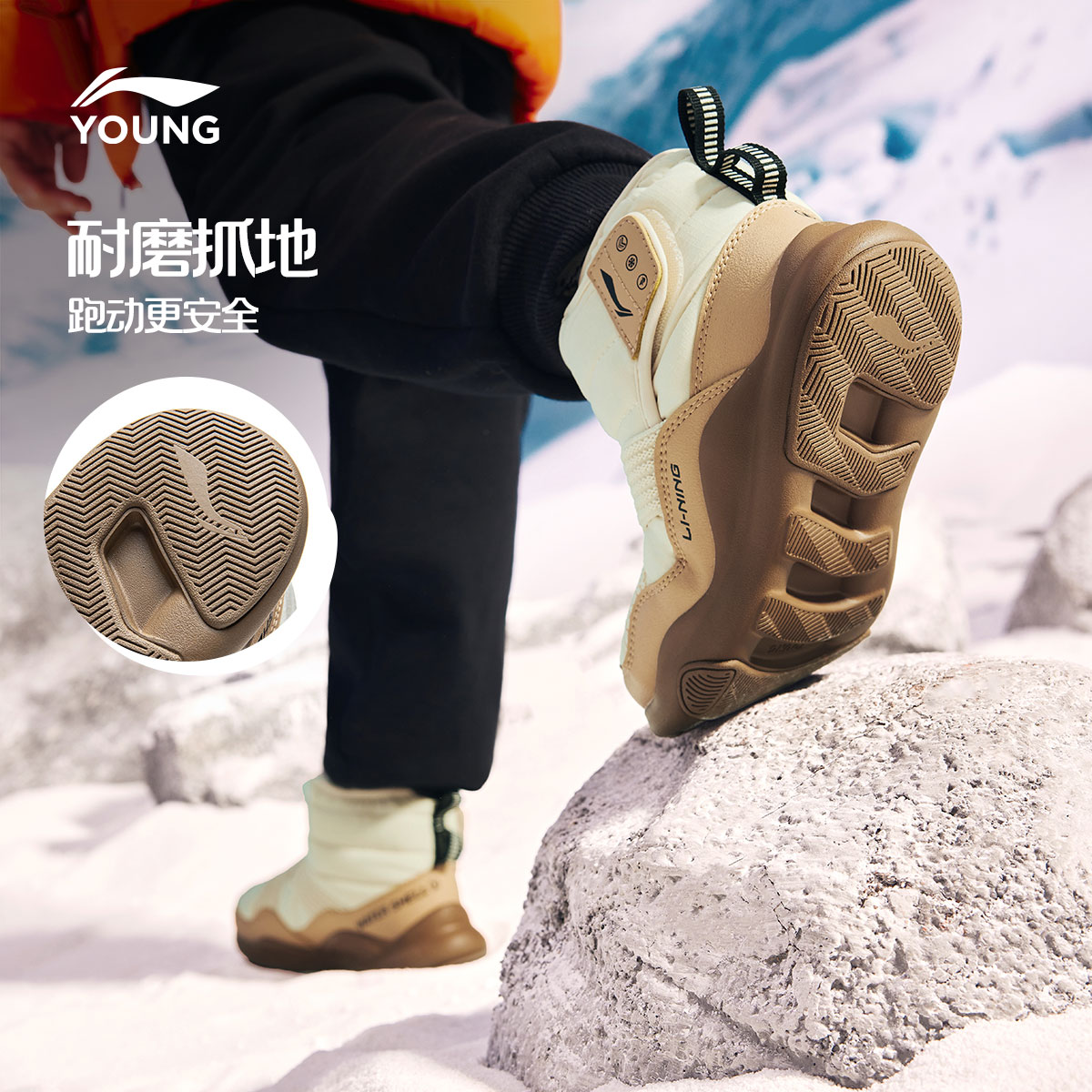 李宁小童防泼水雪地靴加绒大棉鞋2025新款男童鞋女宝宝冬季运动鞋