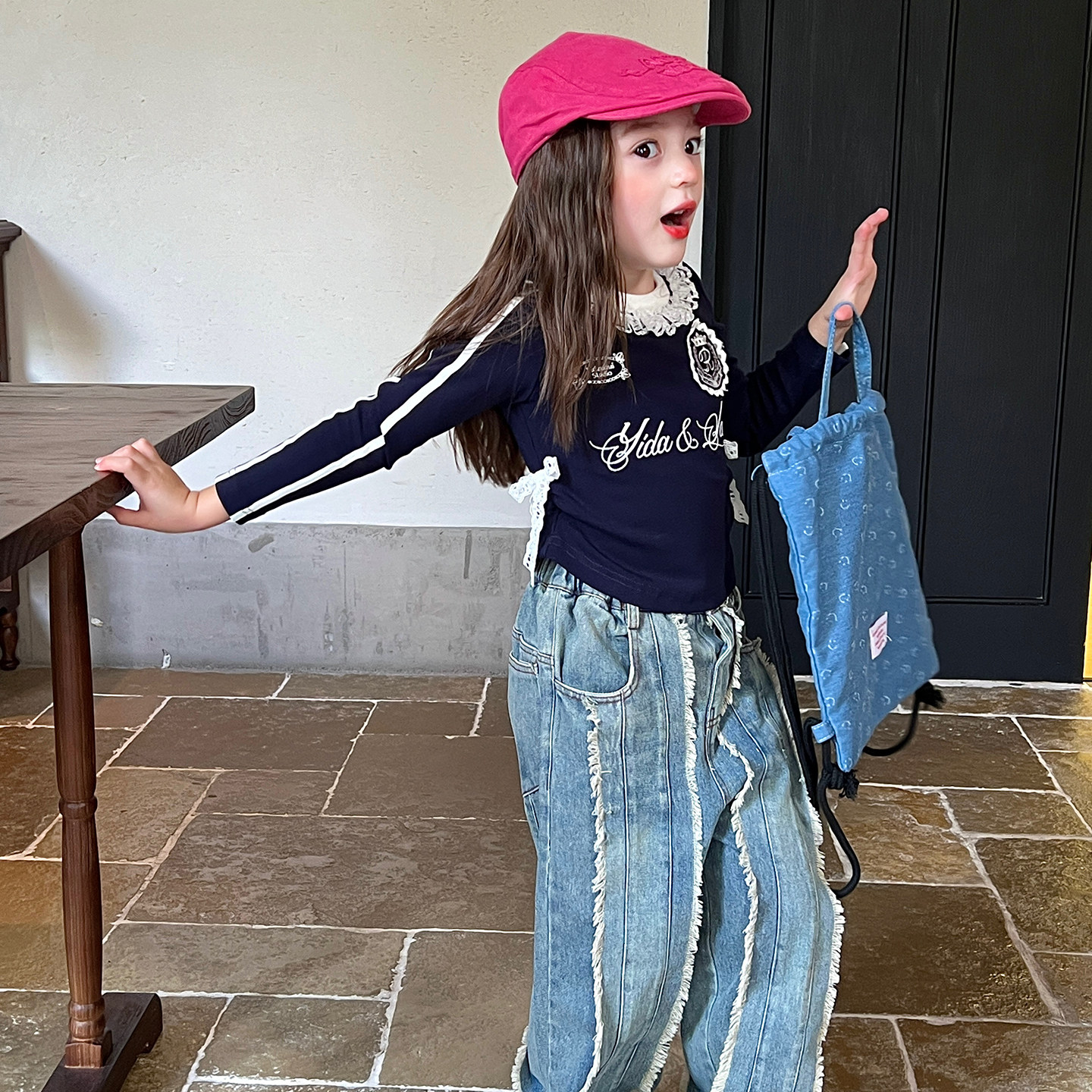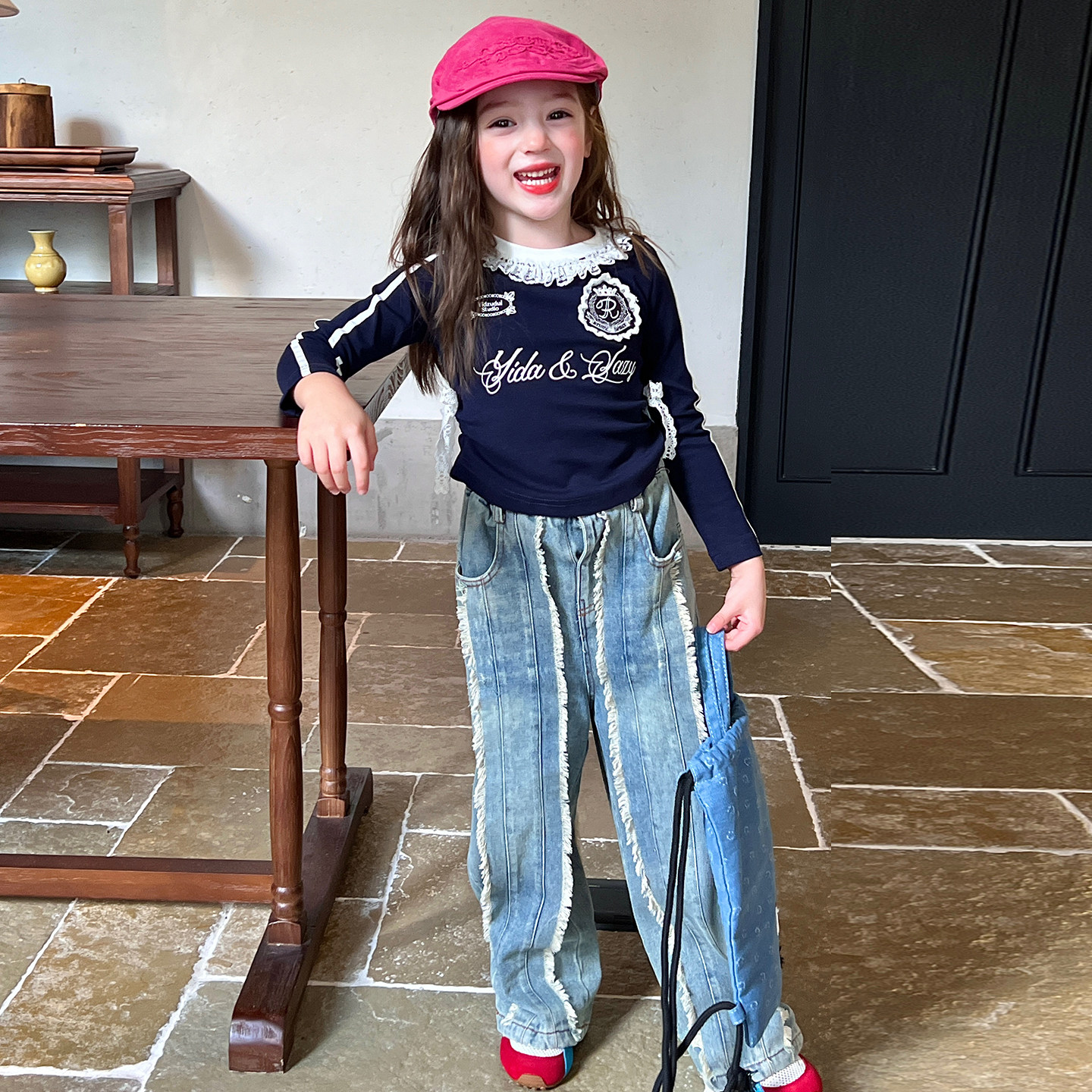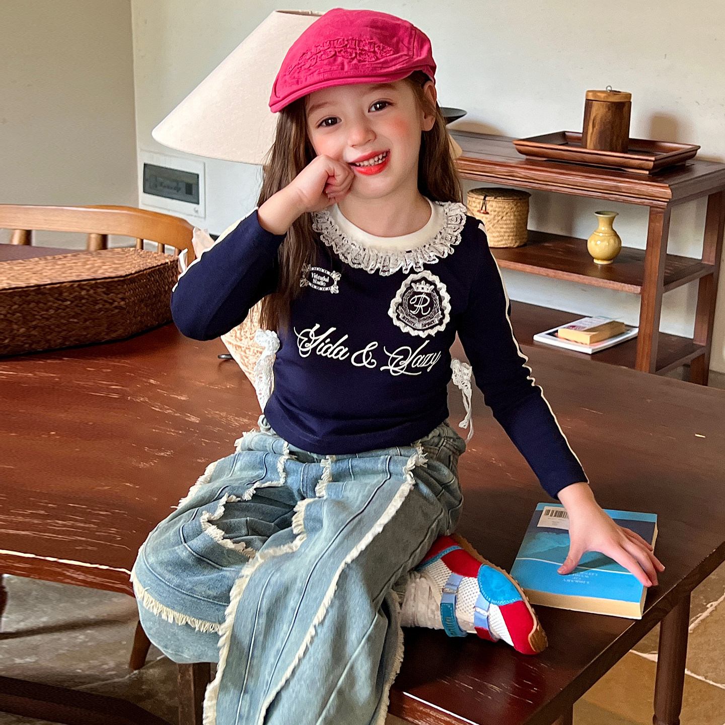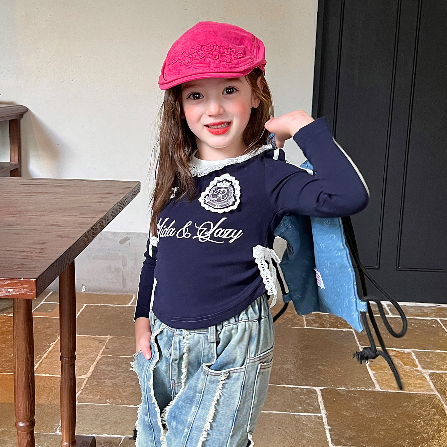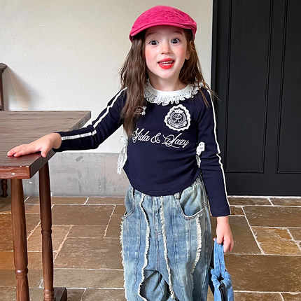栀了成长记女童装韩版蕾丝T恤秋季新款儿童宝宝美式复古长袖上衣