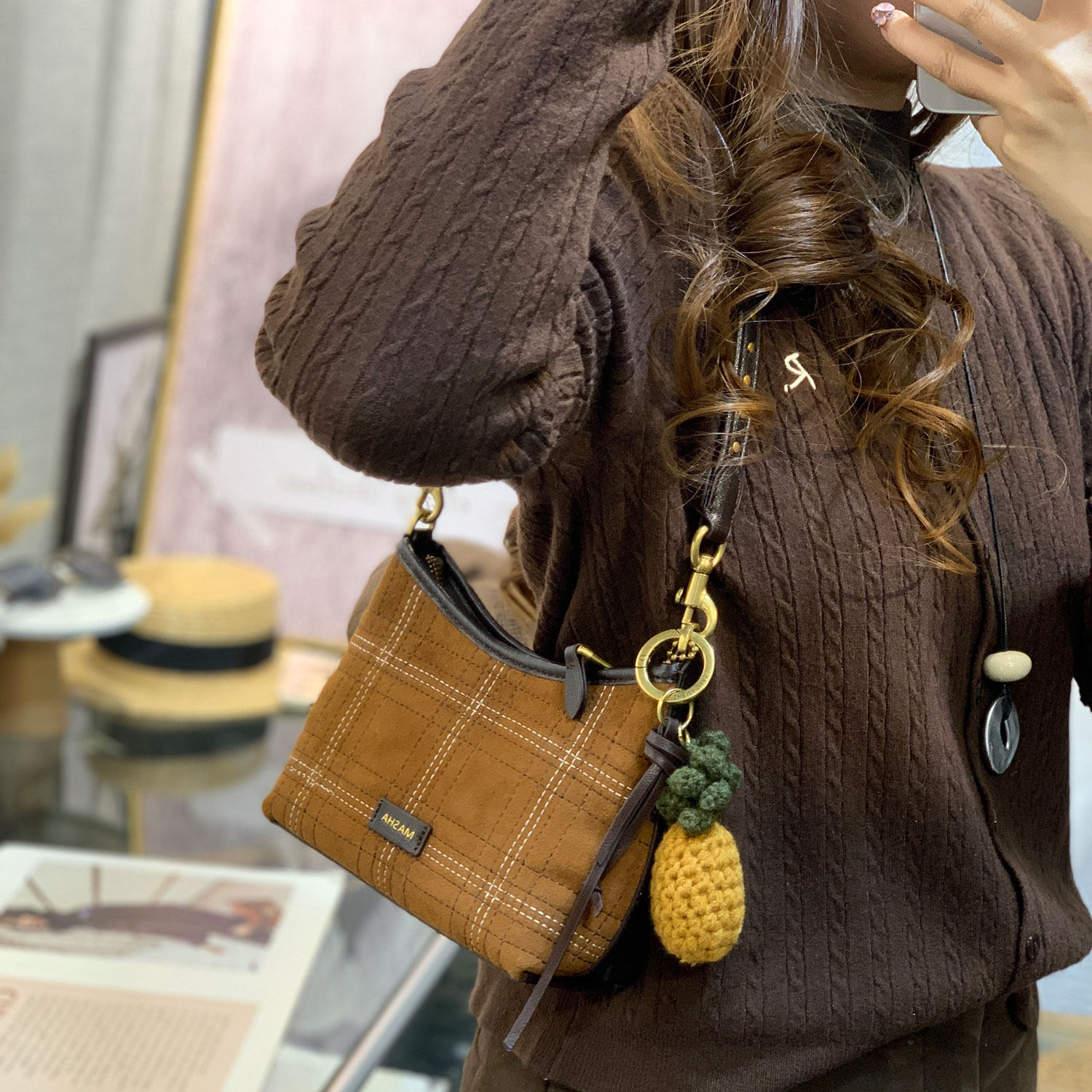 秋冬新款磨砂质感小方包菠萝精致单肩女包迷你斜挎手提2025百搭潮