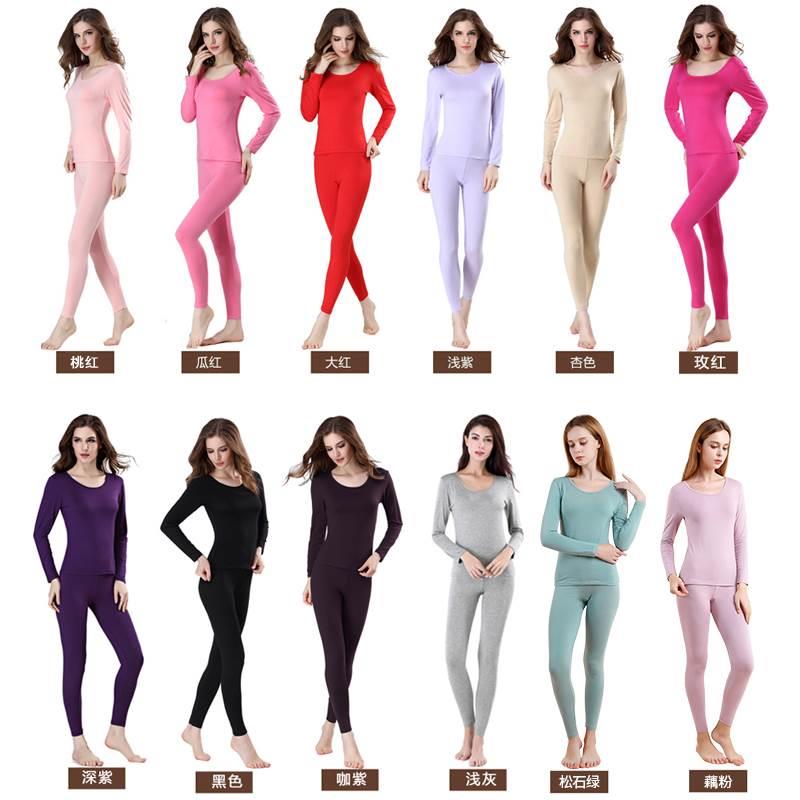 女莫代尔纯棉秋衣秋裤套装紧身美体厚款打底纯色保暖内衣线衣线裤