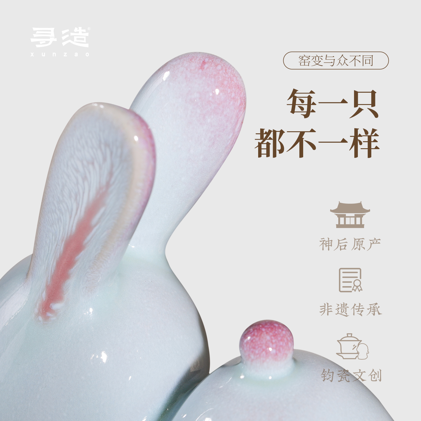 寻造钧瓷追梦兔子摆件 可爱毕业礼物 生日礼品送女生订婚结婚礼物