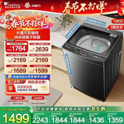小天鹅10/12kg水魔方家用变频波轮全自动大容量洗脱洗衣机 M08DT