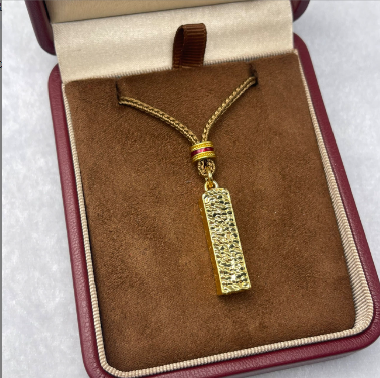 黄金饰品18K金 轻奢镶嵌百搭四方来财印配饰 (赠绳)