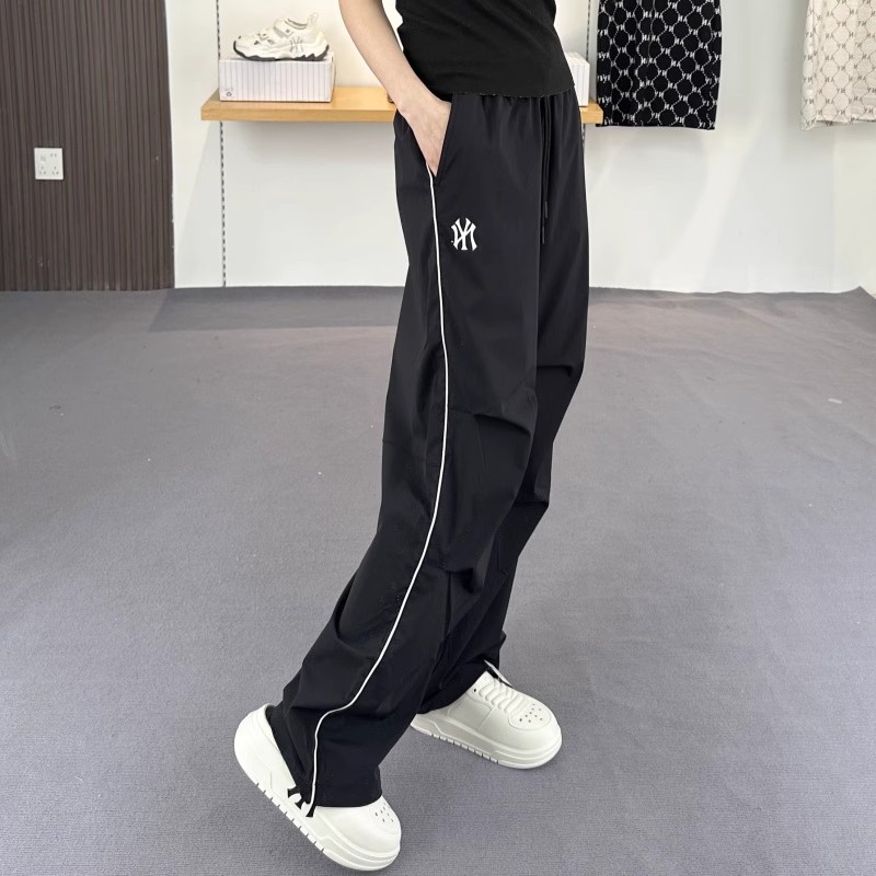 25新款MLB情侣长裤男女NY小标印花侧边线梭织直筒运动裤3AWPV0253