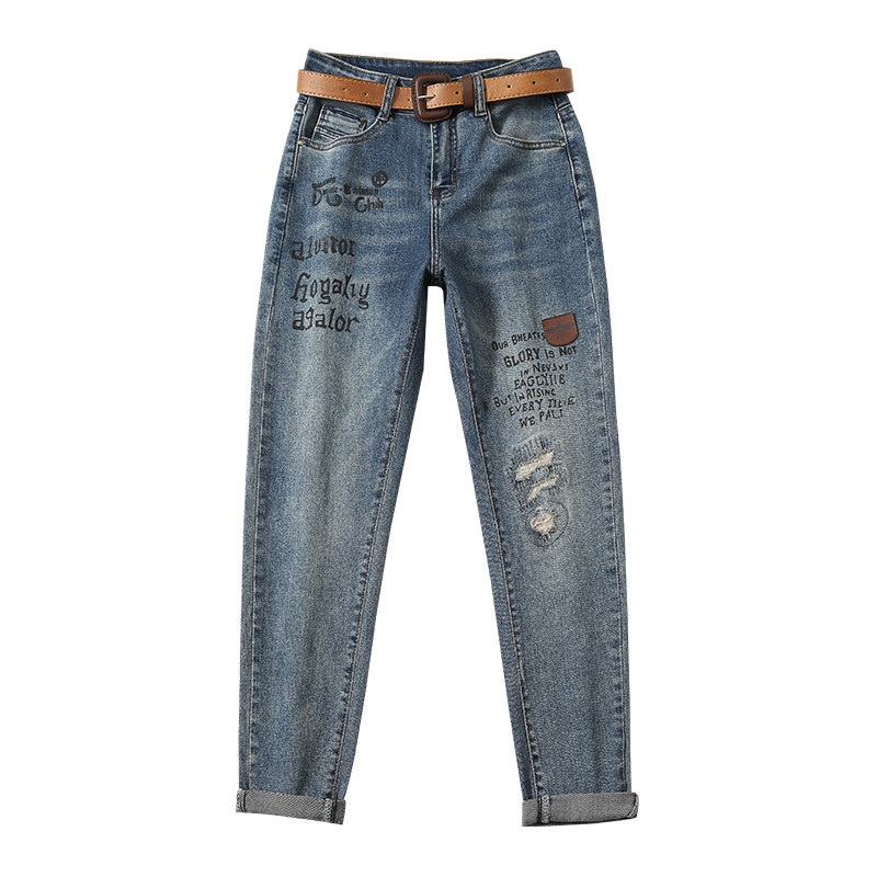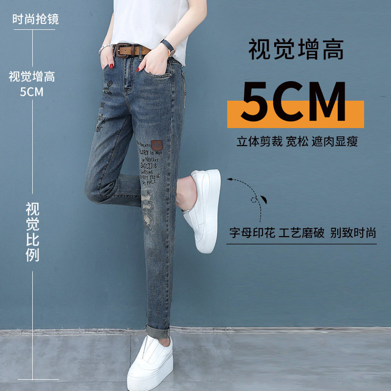 破洞老爹牛仔裤女宽松2025年秋冬新款潮时尚显瘦百搭九分哈伦裤子