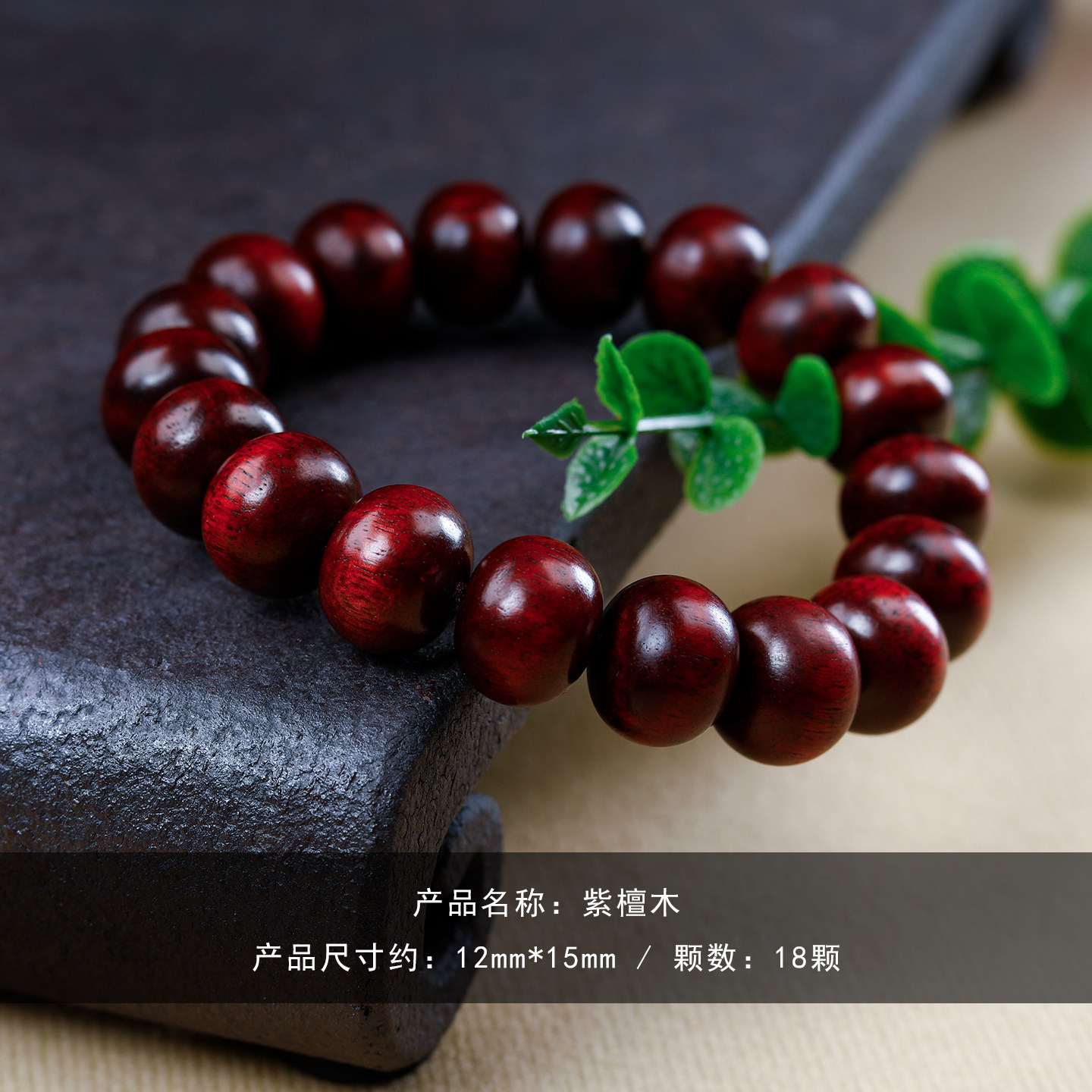 天然紫檀木质手链算盘转运珠
