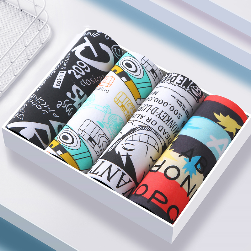 4条冰丝男士内裤薄款大码平角裤青年个性裤衩潮男生四角裤夏季