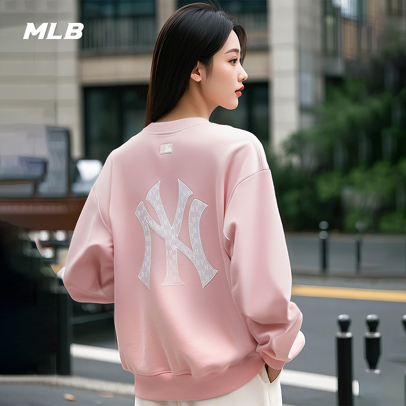MLB官方男女情侣老花大logo时尚圆领纯色百搭卫衣25春夏新款MTM04