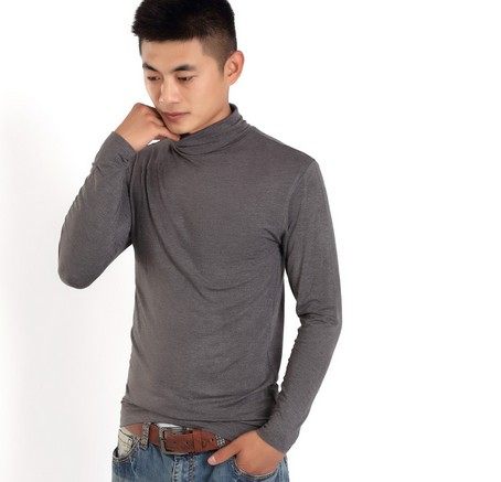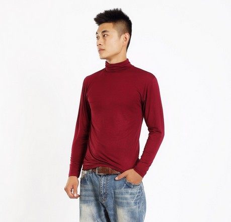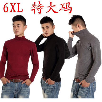 莫代尔男肥高领打底秋衣长袖t恤