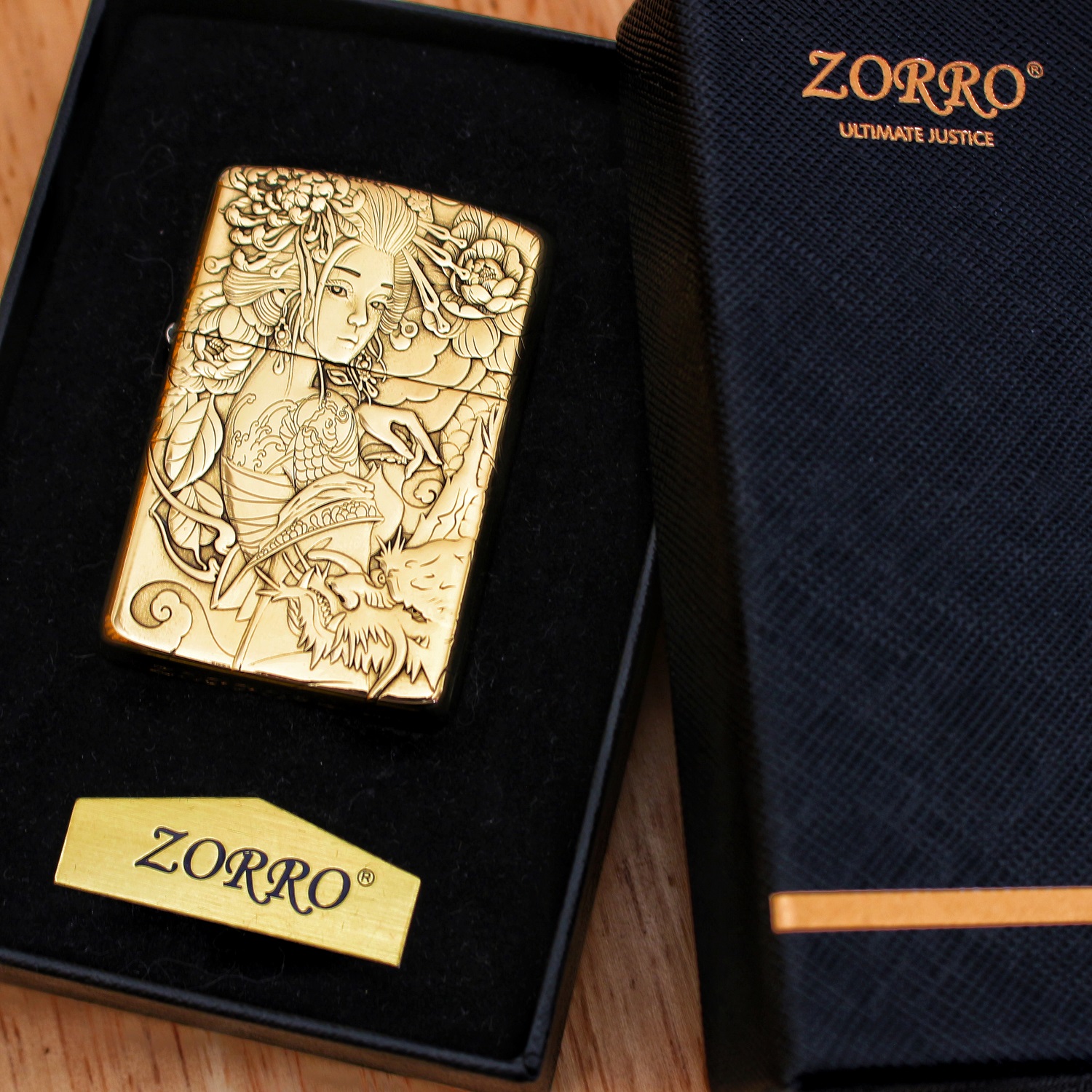 佐罗打火机牡丹艺伎黄铜美女浮雕