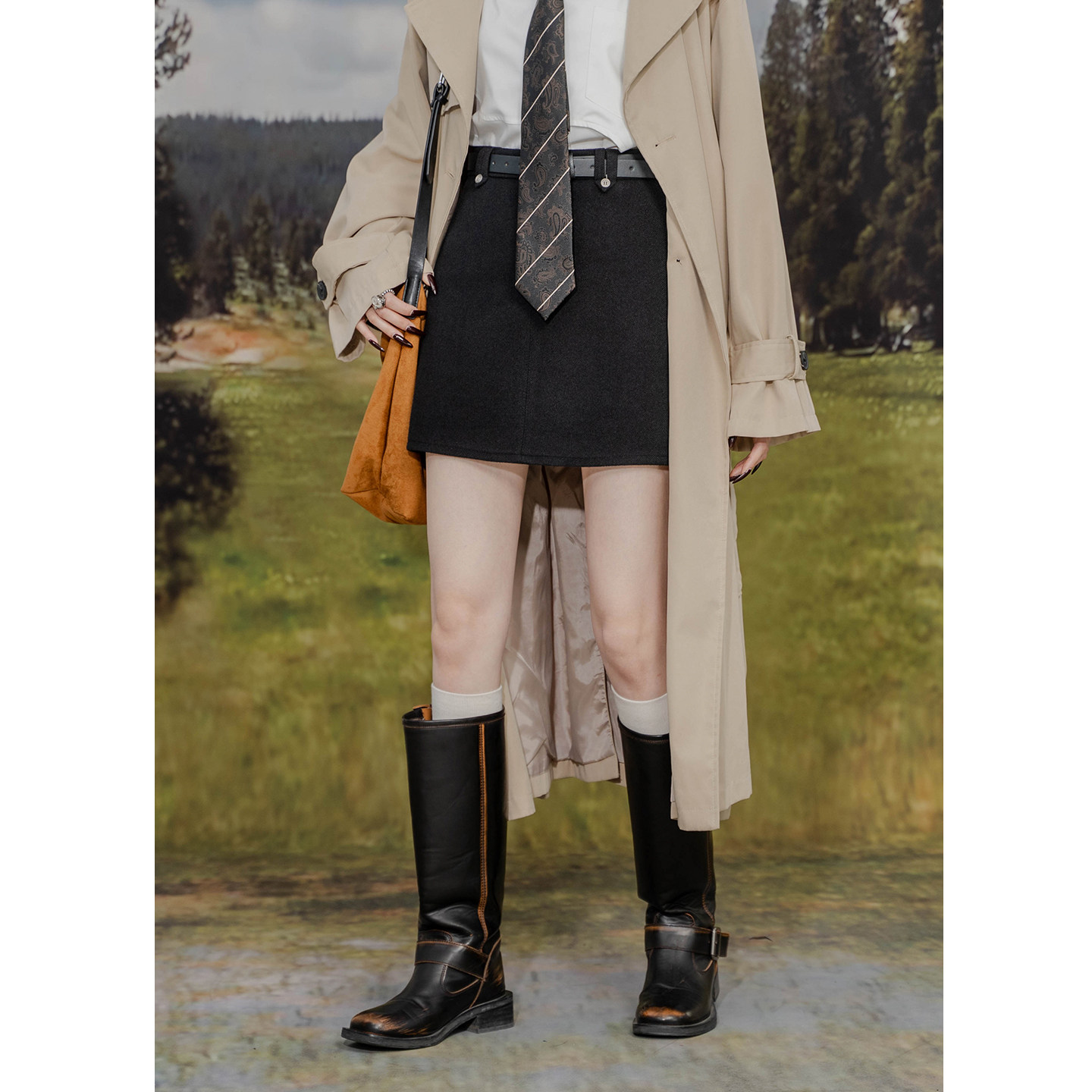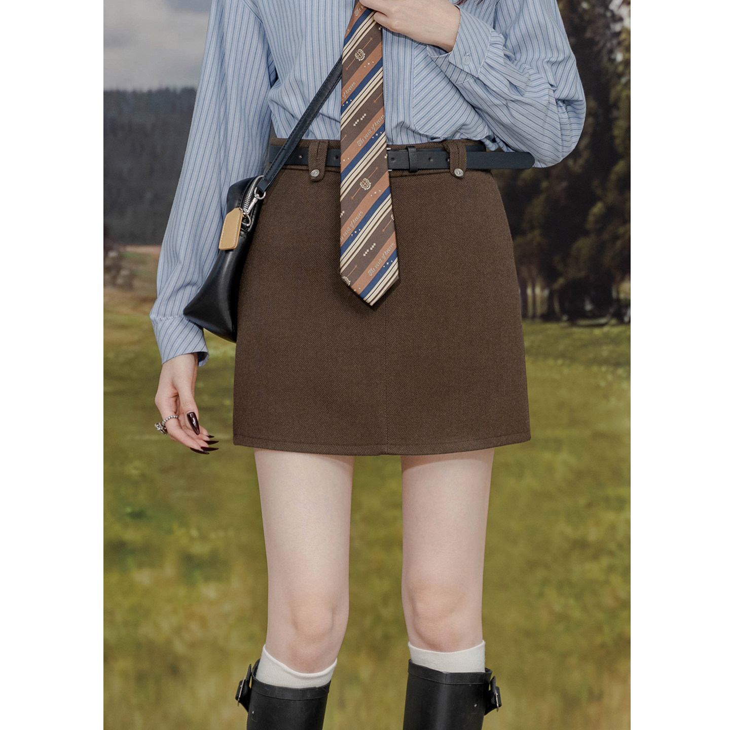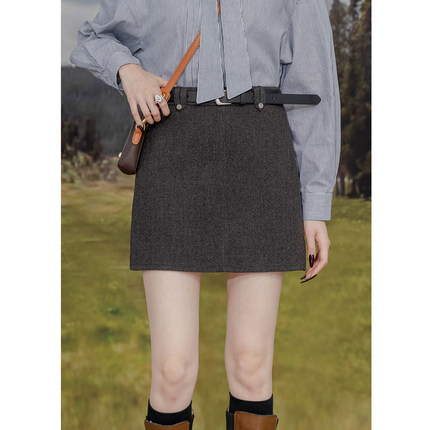 高腰毛呢半身裙女高智感气质修身显瘦包臀A字裙防走光呢子短裙潮