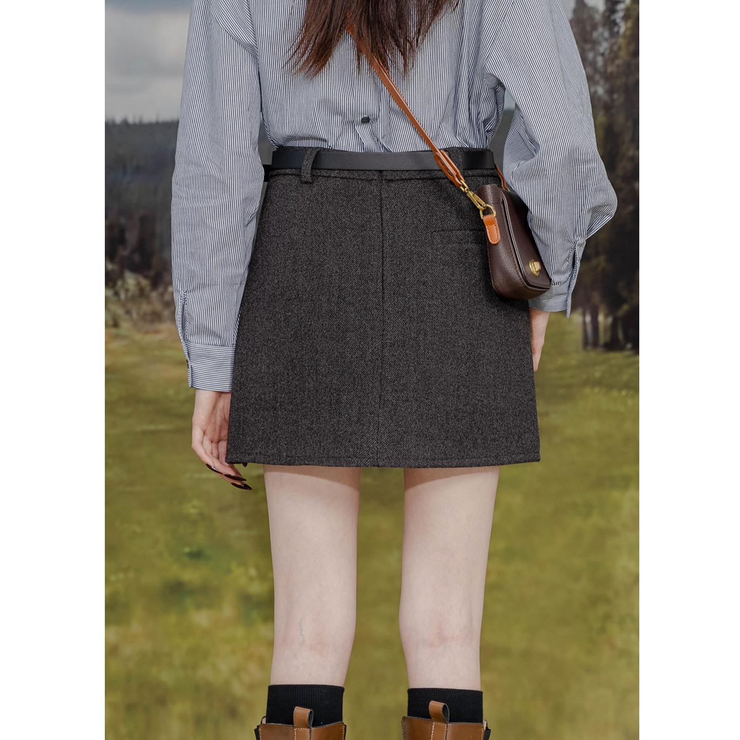 高腰毛呢显瘦修身包臀半身裙