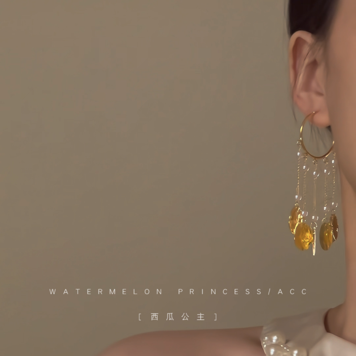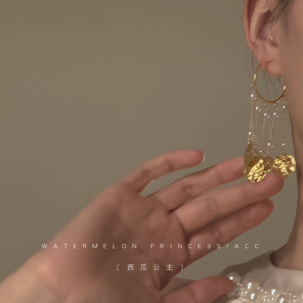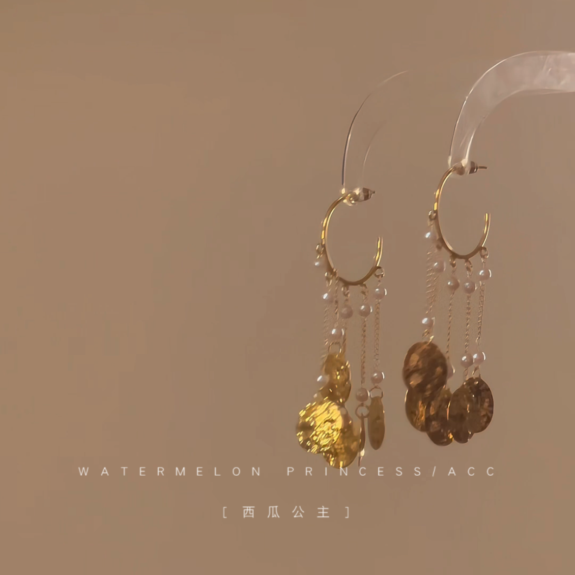 「异域波光」肌理感圆圈流苏耳环女高级感轻奢金色小众设计感耳饰
