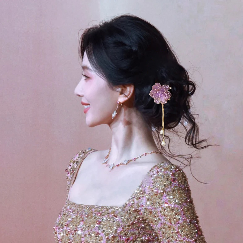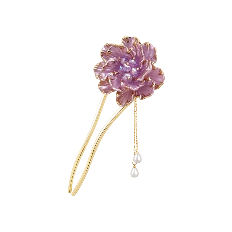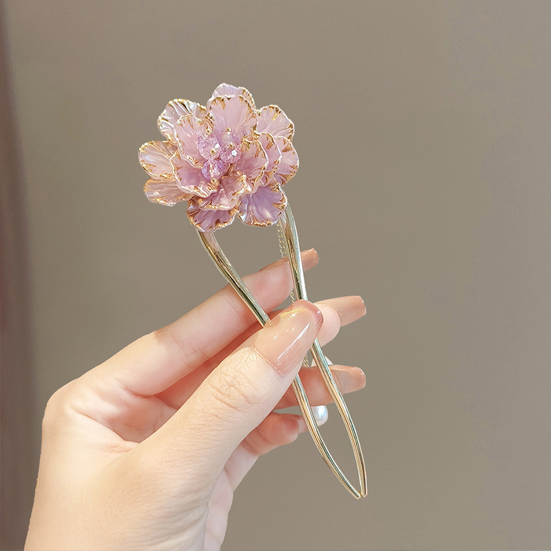 牡丹花u型流苏发簪女新中式气质盘发发钗古风精致高级感旗袍发饰