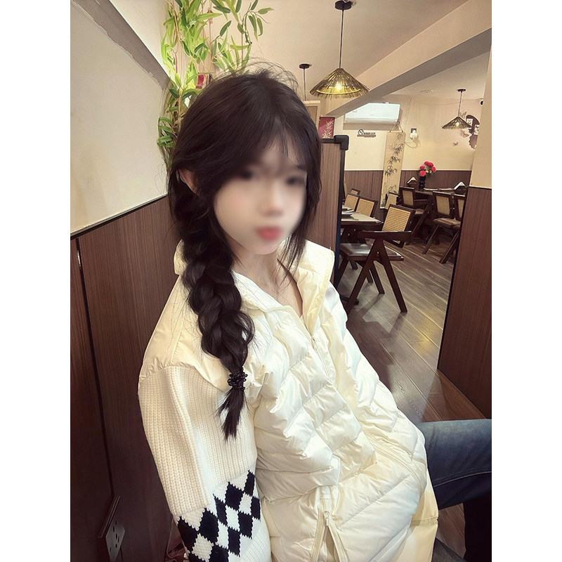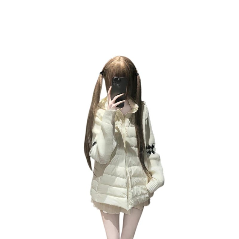 日系通勤甜美减龄感米白色针织拼接保暖棉服百搭软妹保暖防寒外套