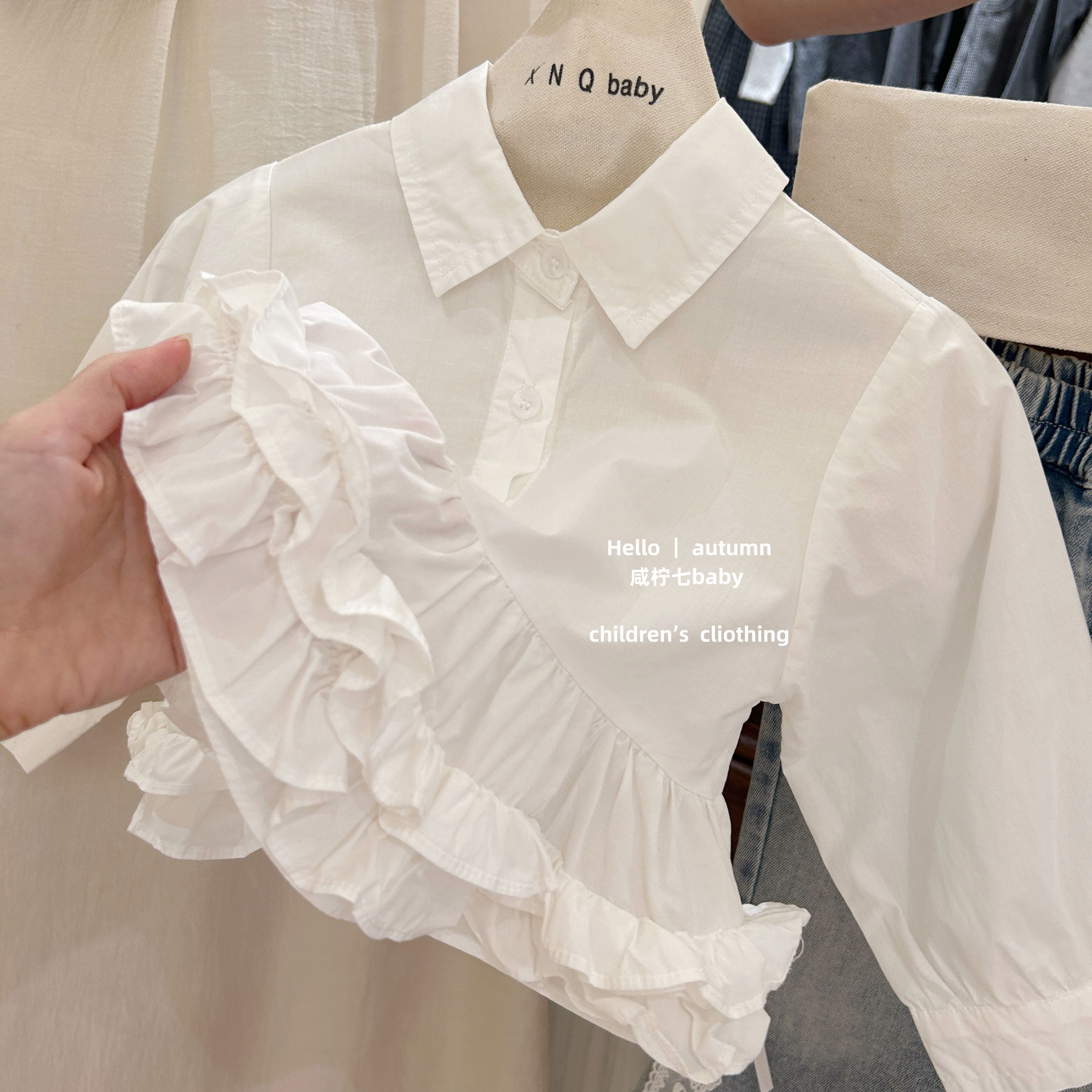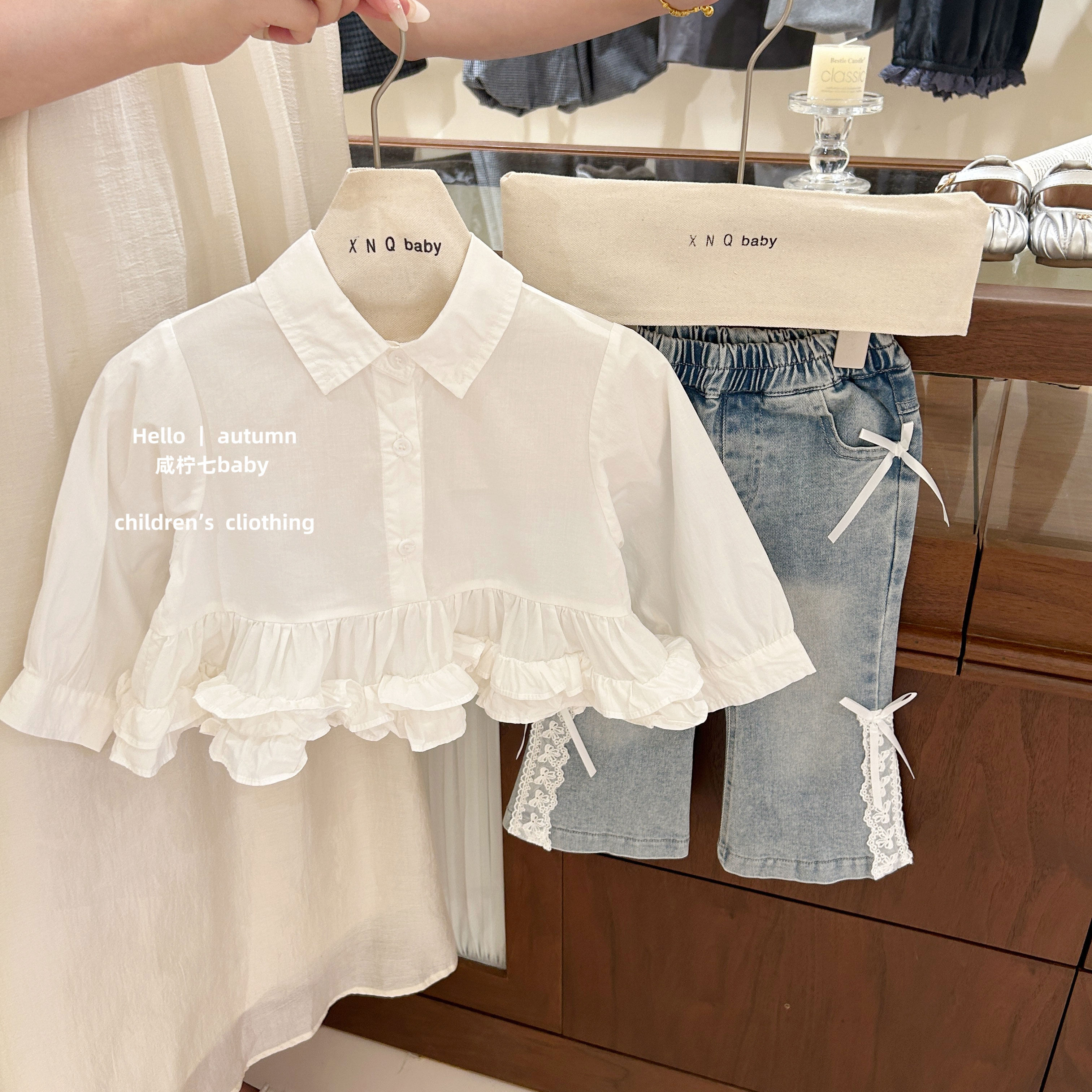 【咸柠七】原创!女童衬衫春秋韩版秋季娃娃衫女宝长袖牛仔裤套装