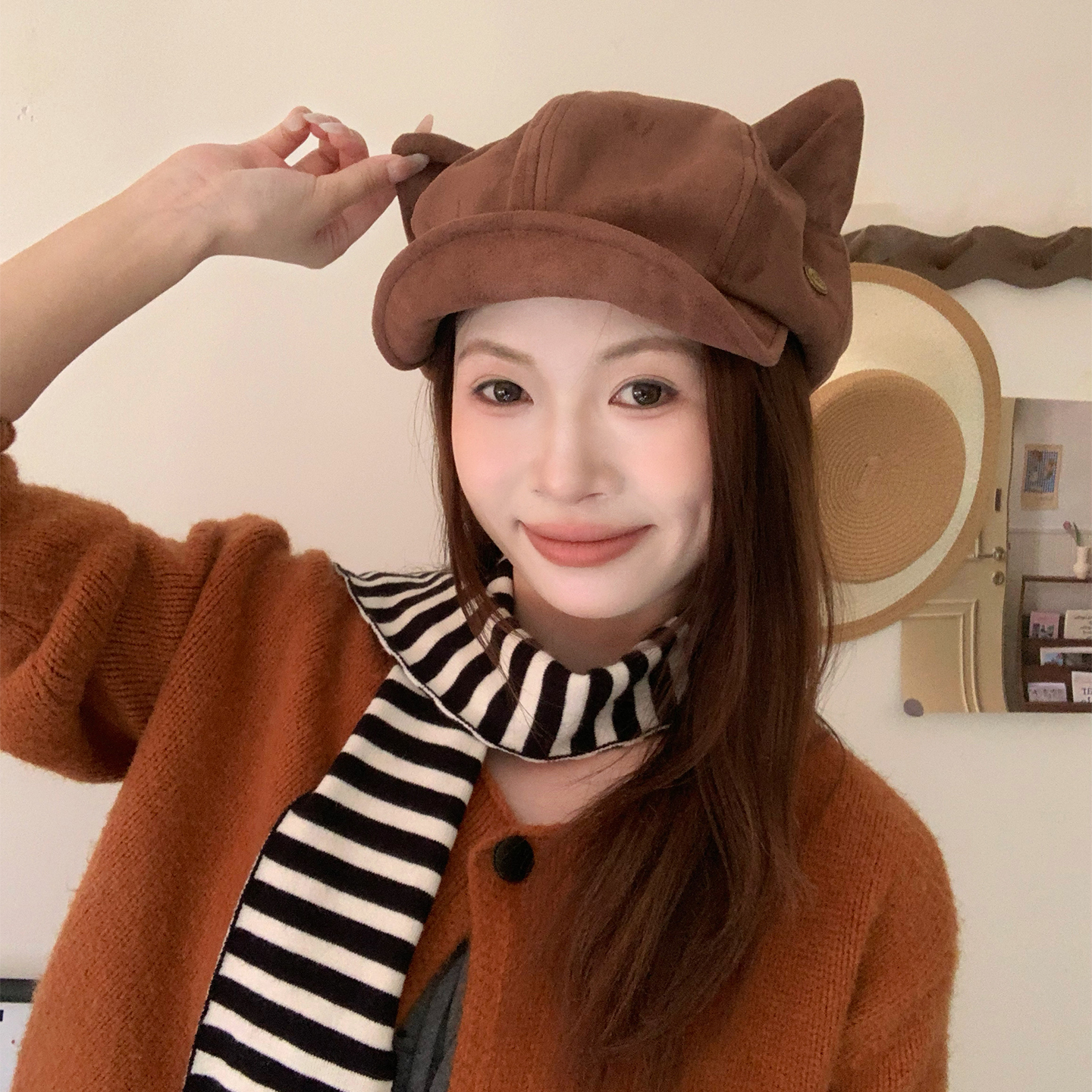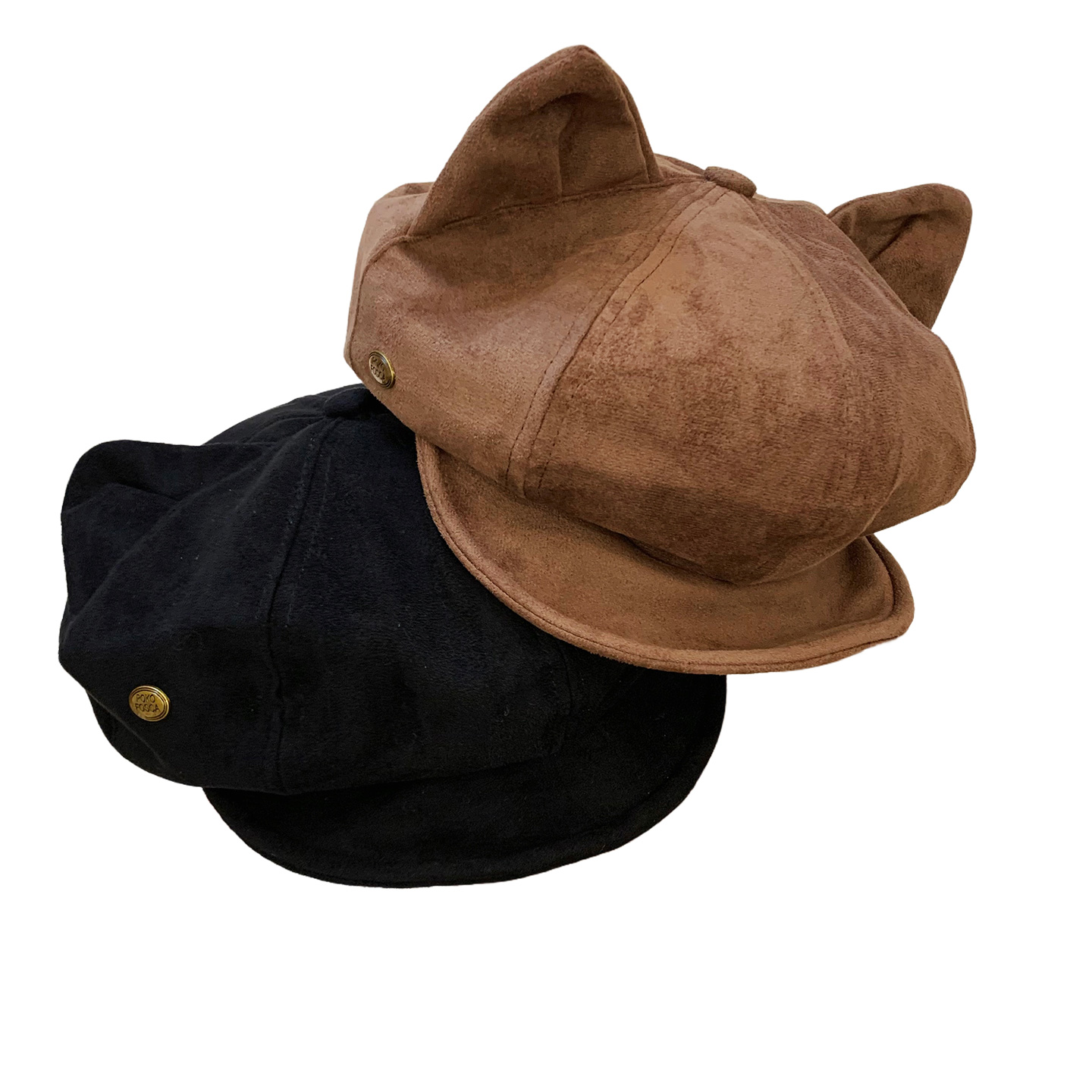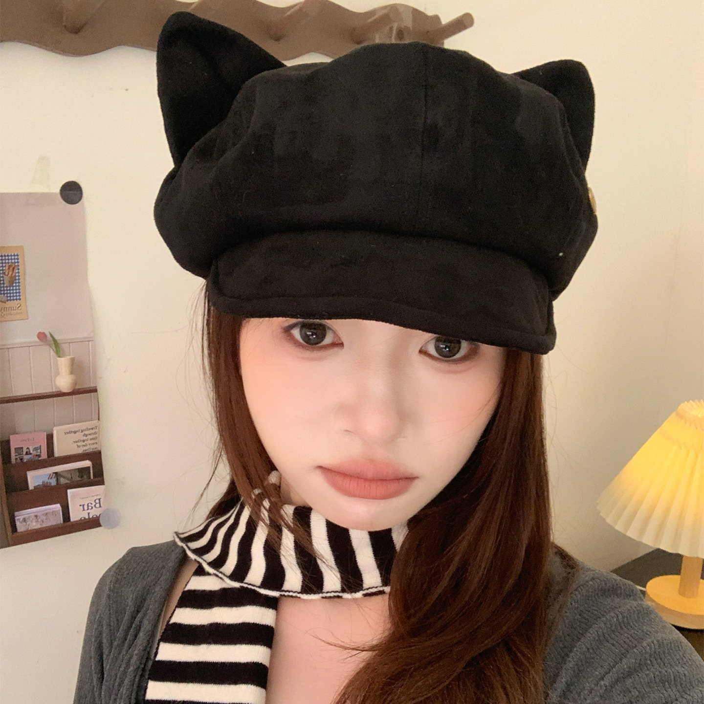 日系可爱猫耳八角帽子女秋冬季文艺百搭贝雷帽显脸小休闲画家帽