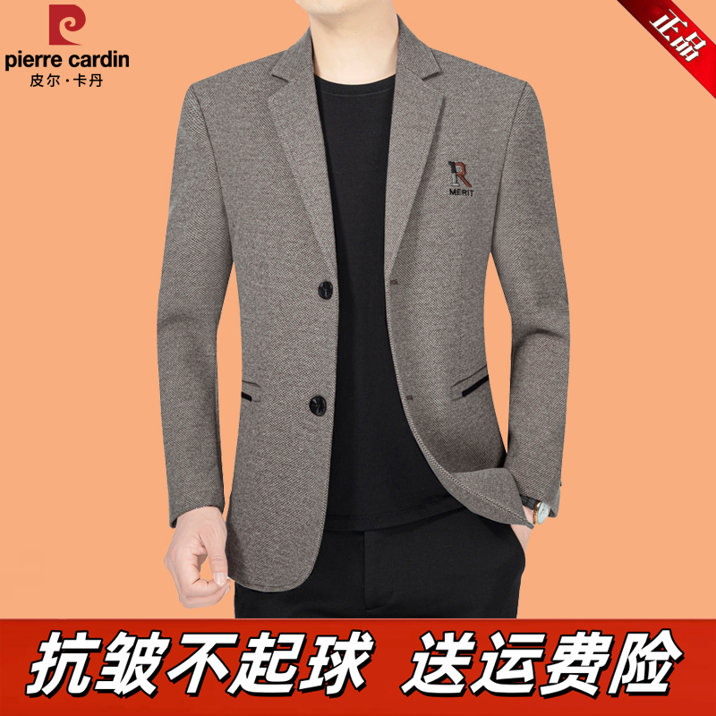 皮尔卡丹西装男外套新款中年爸爸单件上衣春秋休闲修身高级感西服