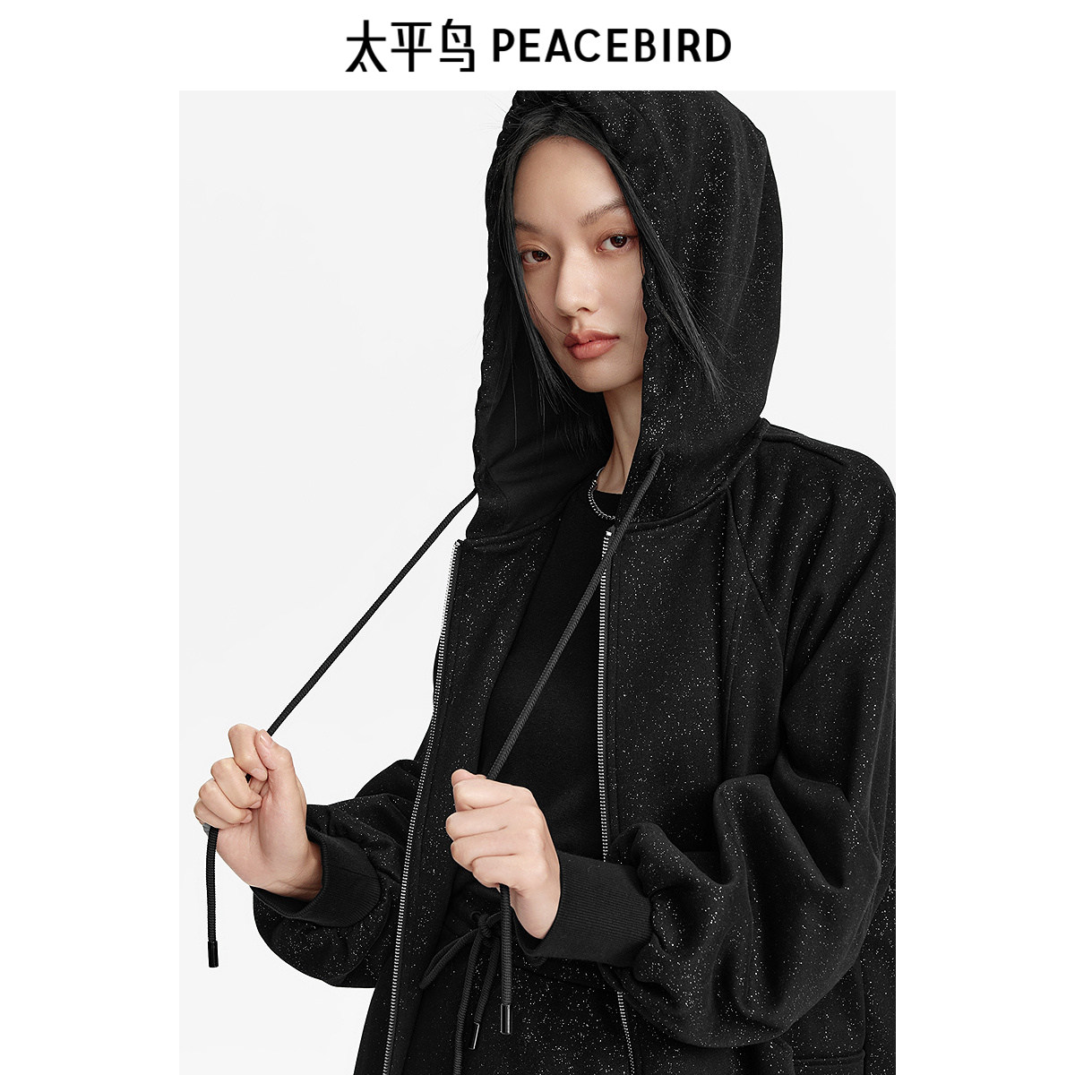 太平鸟女装 时髦闪光卫衣半身裙秋女士拉链外套可绑带短裙
