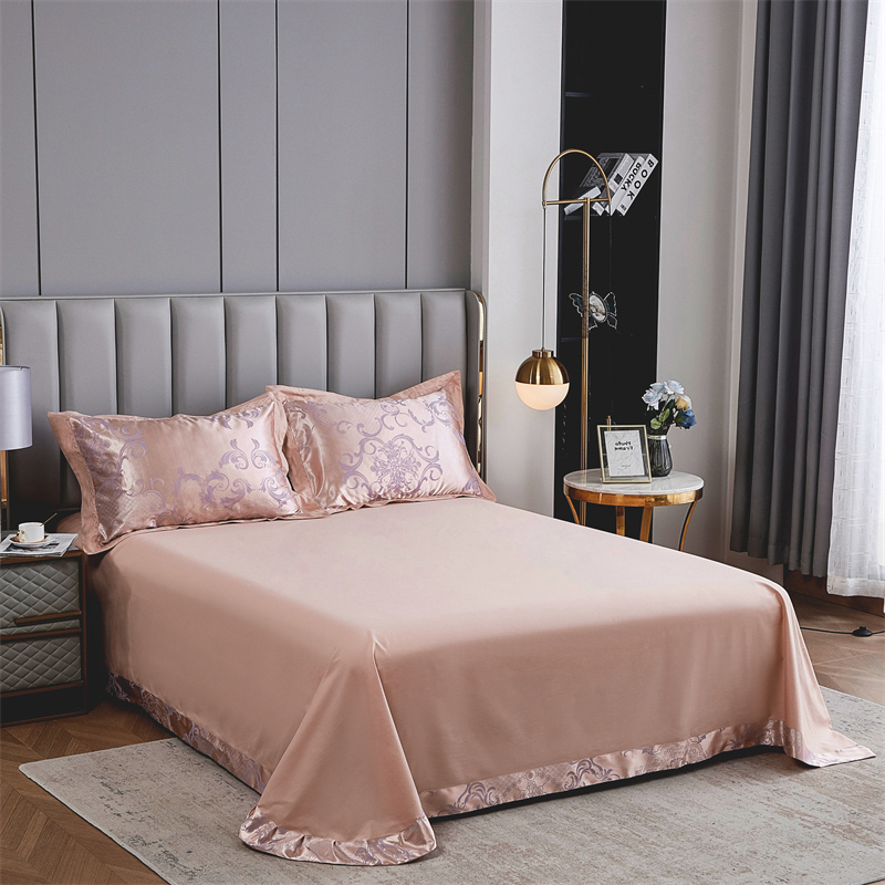 欧式轻奢高级100%纯棉床单单件全棉圆角花边大床单枕套三件套纯色