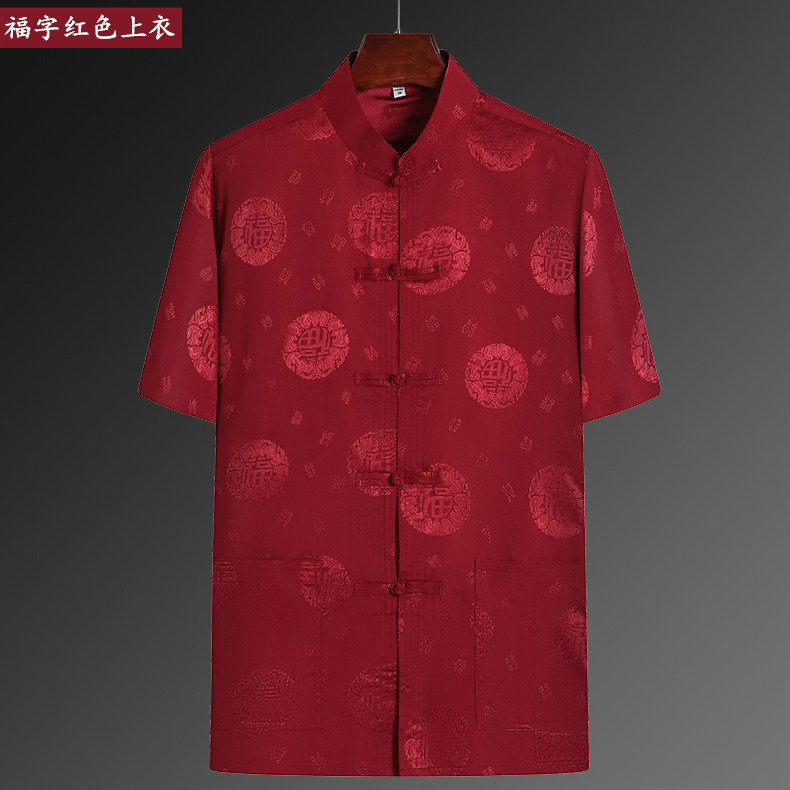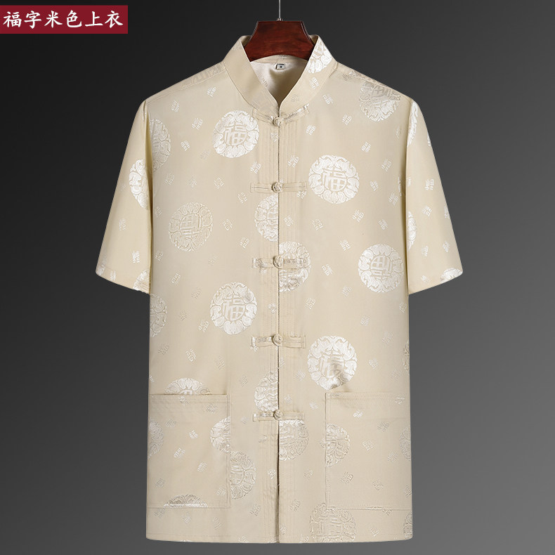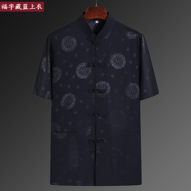 夏季桑蚕丝中老年唐装男短袖上衣