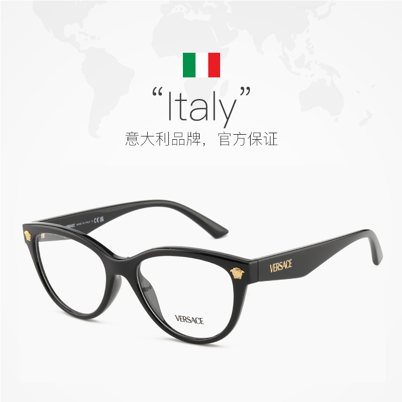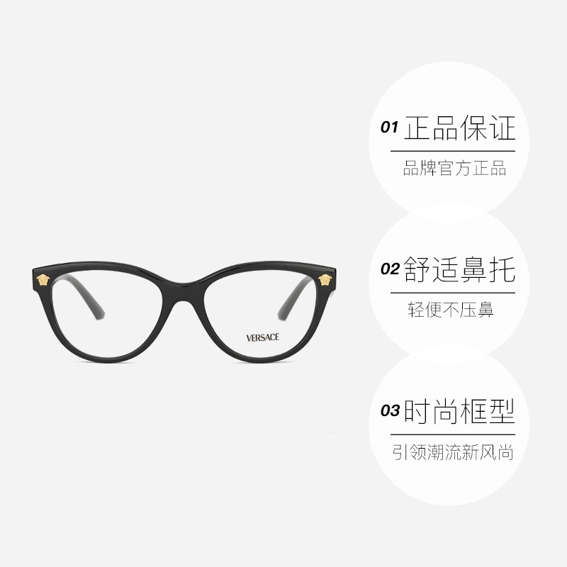 【自营】Versace范思哲眼镜框新款美杜莎黑色镜架 OVE3365U猫眼