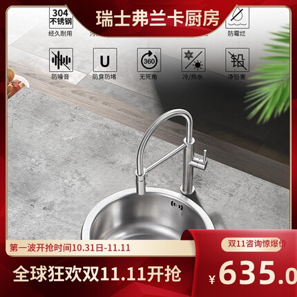 弗兰卡不锈钢拉丝迷你小圆形水槽单槽LUX610洗菜厨盆LUX610-05A
