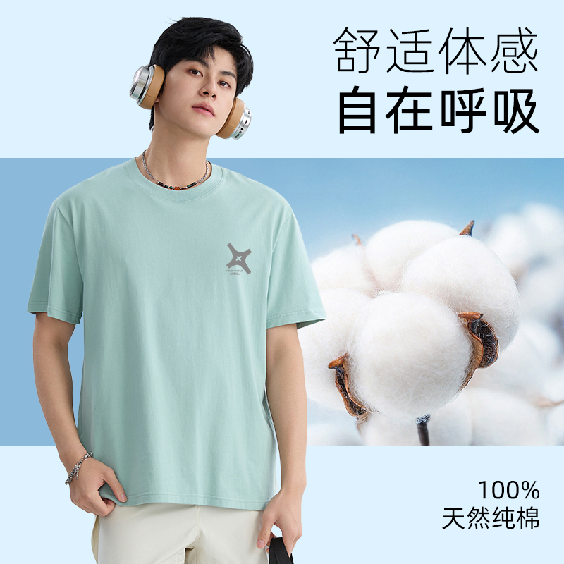 班尼路SK复古美式短袖T恤男夏季纯棉宽松潮牌印花男生半袖上衣服A