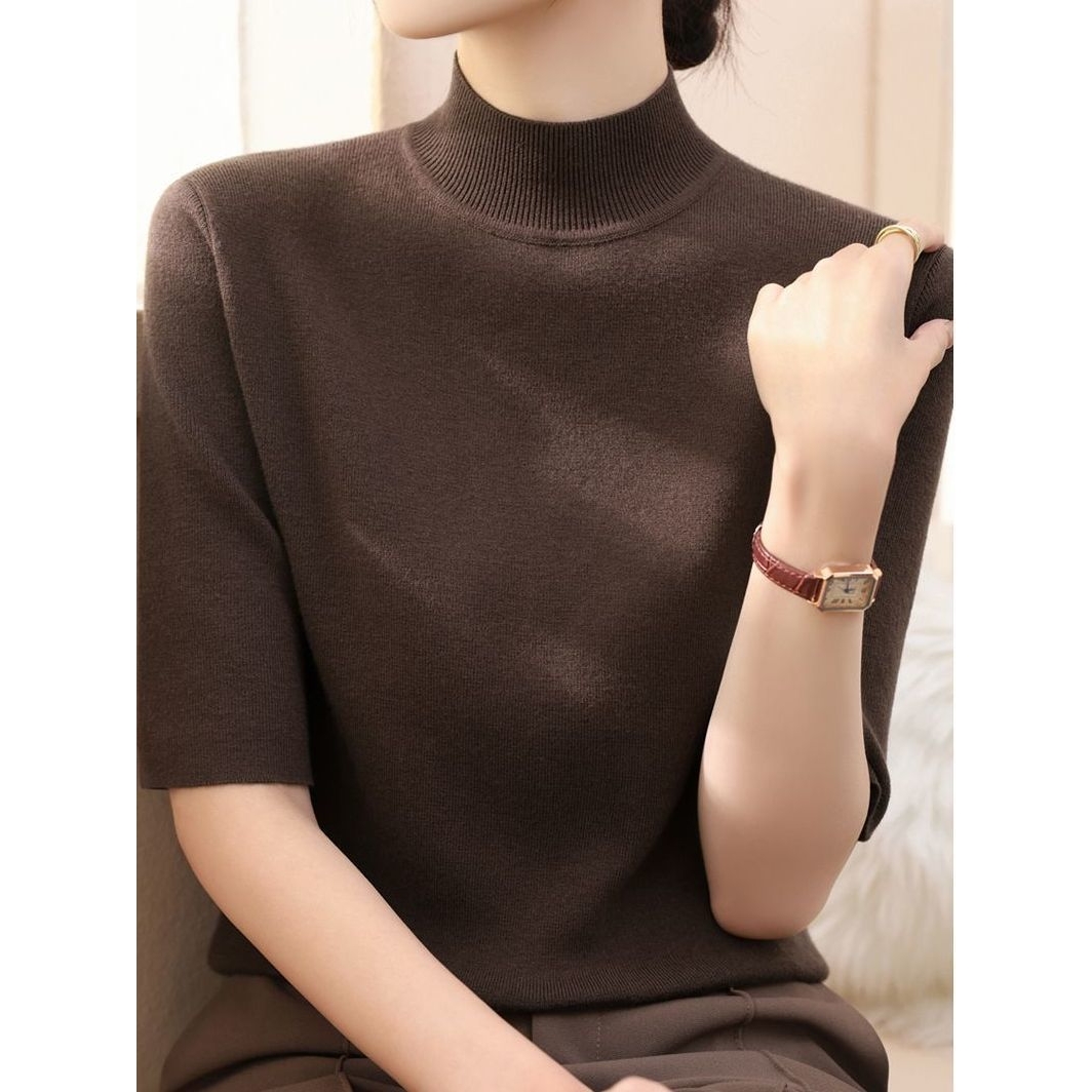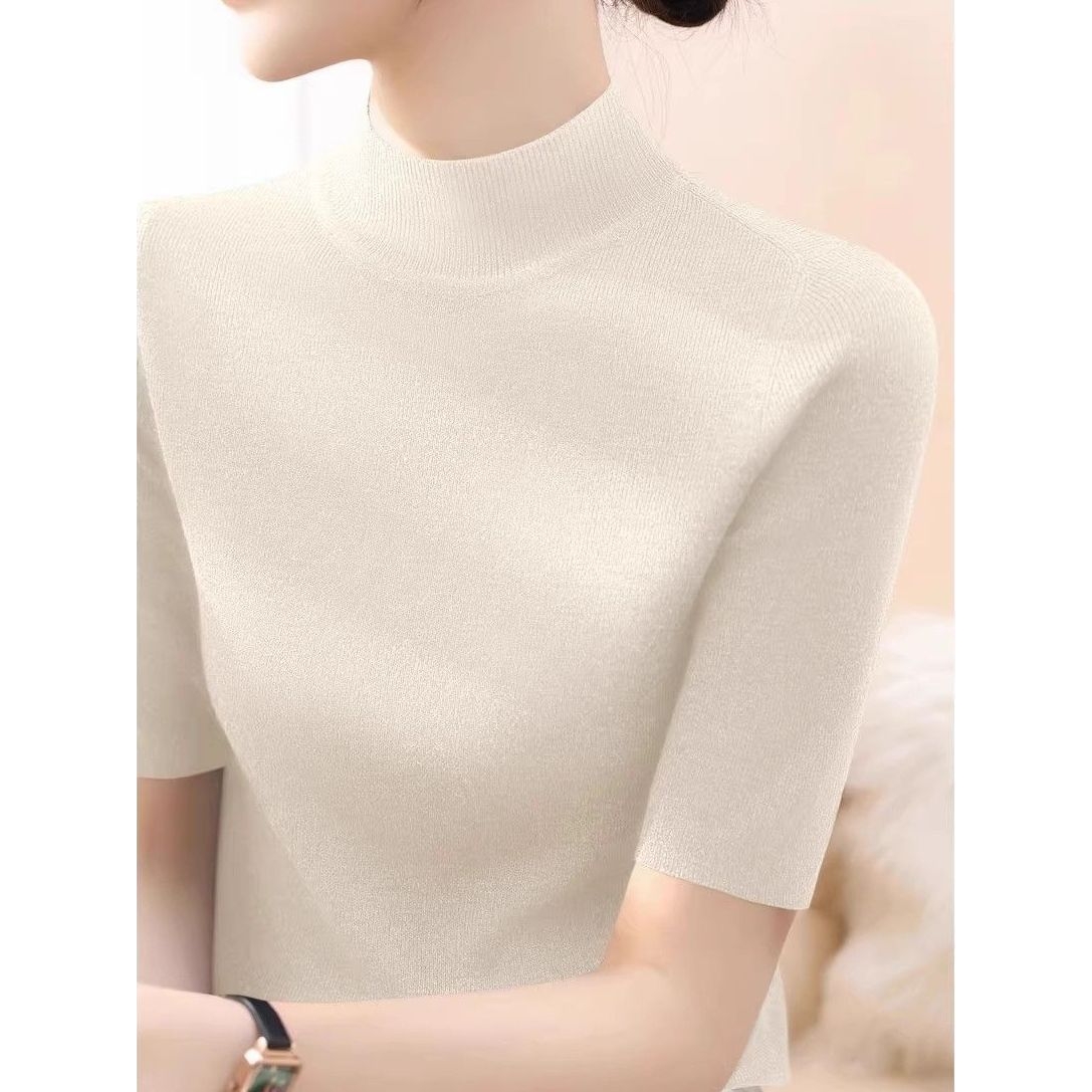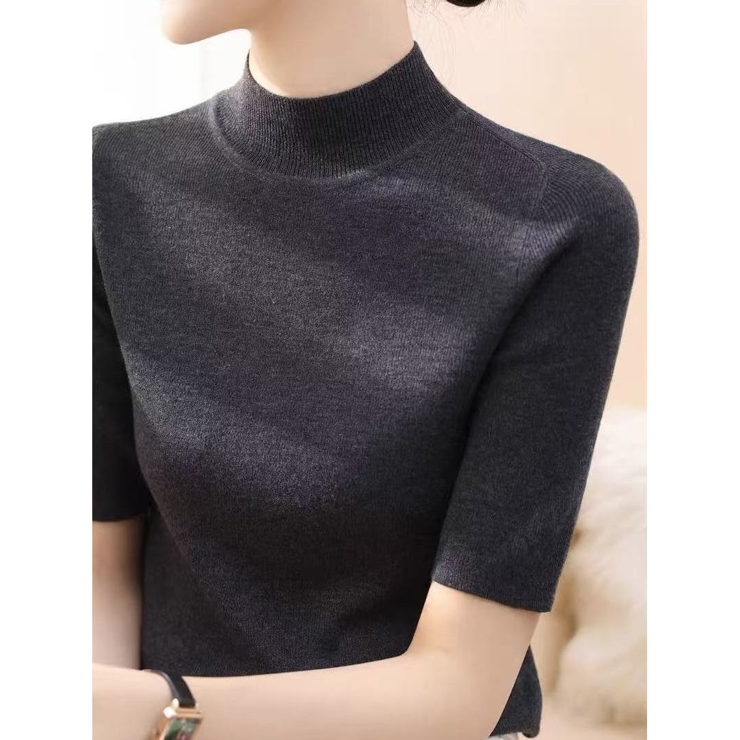 秋季新款半高领中袖修身打底上衣时尚高级感套头百搭针织衫毛衣女