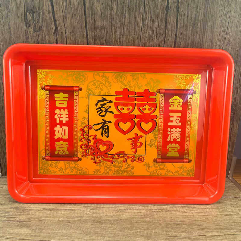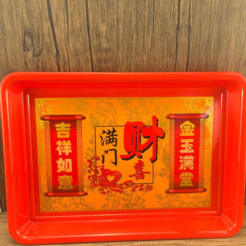 塑料大号长方形三牲结婚入伙乔迁糖果红喜盘拜祖拜神盘大托盘红盘