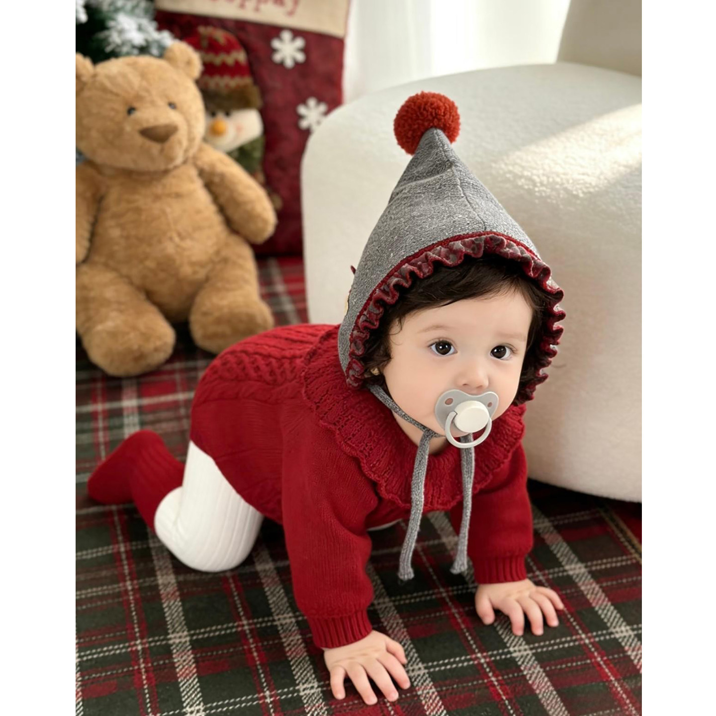 女童红色针织连身衣冬季长袖保暖爬服婴儿新年装可爱麻花包屁哈衣
