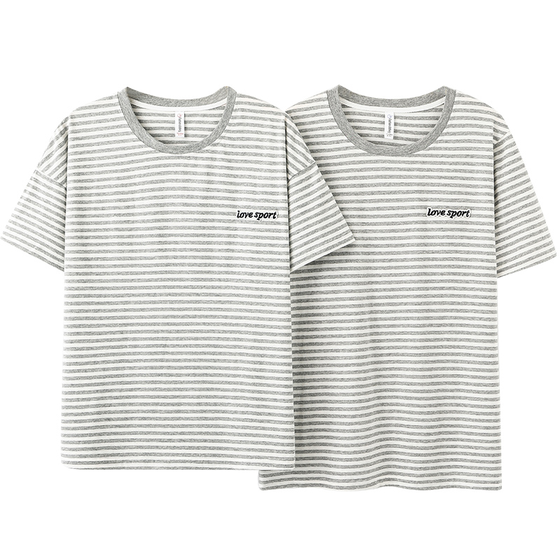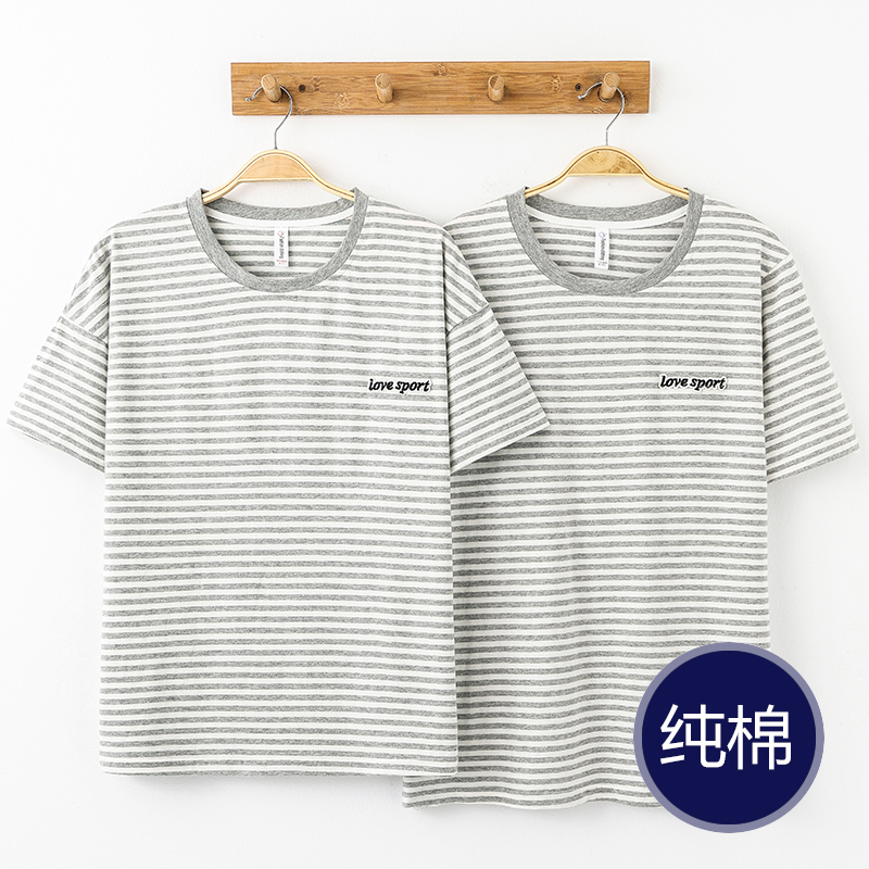 夏季纯棉睡衣单件上衣情侣薄款短袖T恤男女条纹休闲家居服单件衫