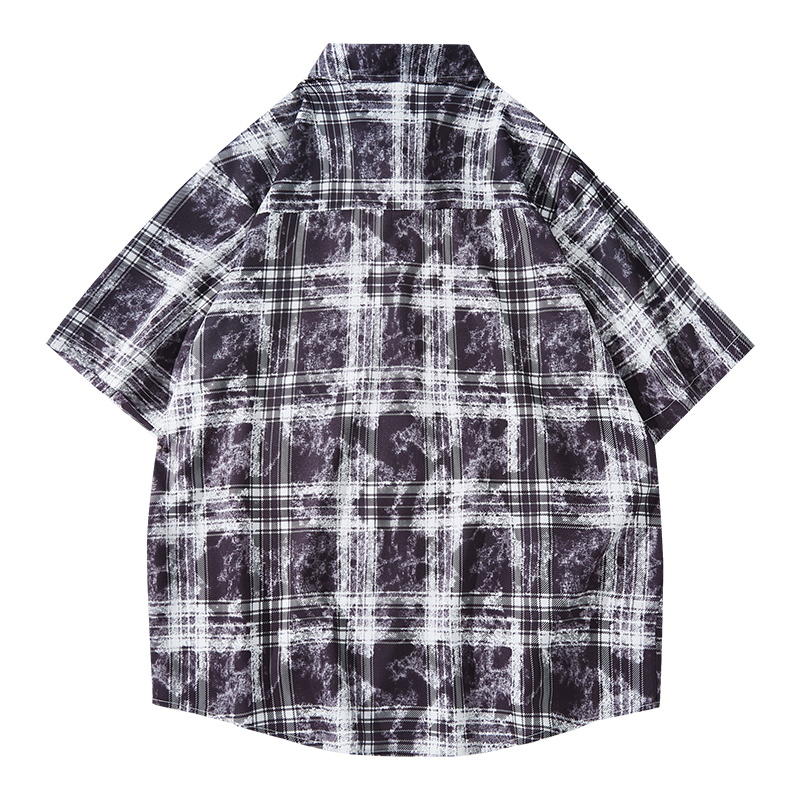 当潮马短袖上衣衬衫翻领潮流港风青少年大码格子满印男款QCCS2503