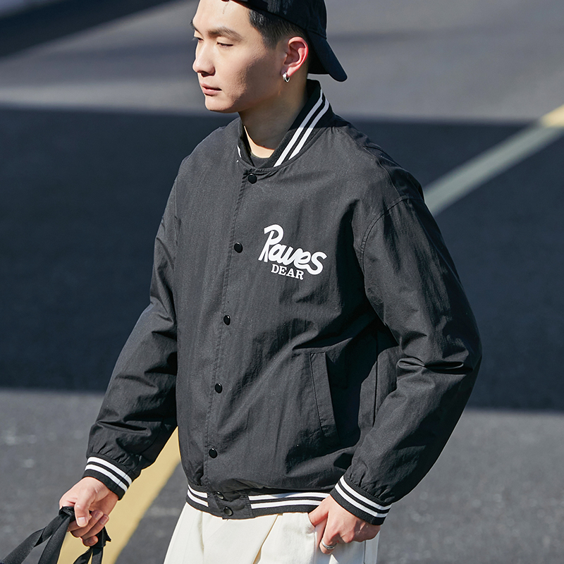 唐狮春季新款棒球服男休闲户外美式外套棒球领男士棒球服外套宽松