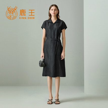 【专柜同款】鹿王桑蚕丝真丝连衣裙女士纯色翻领简约25年春夏新款