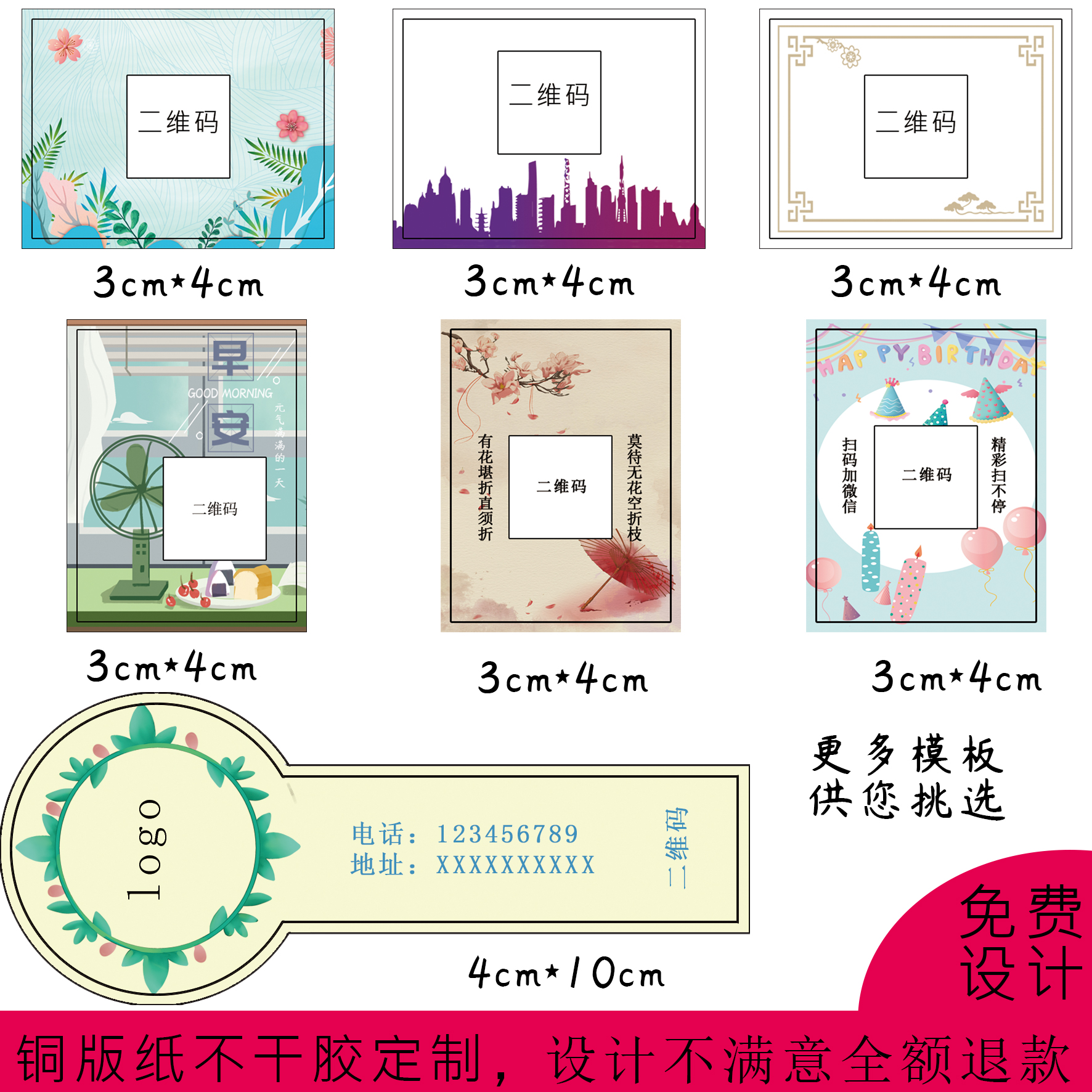 定做二维码贴纸定制作标签商标logo不干胶标签茶叶外卖水果标签