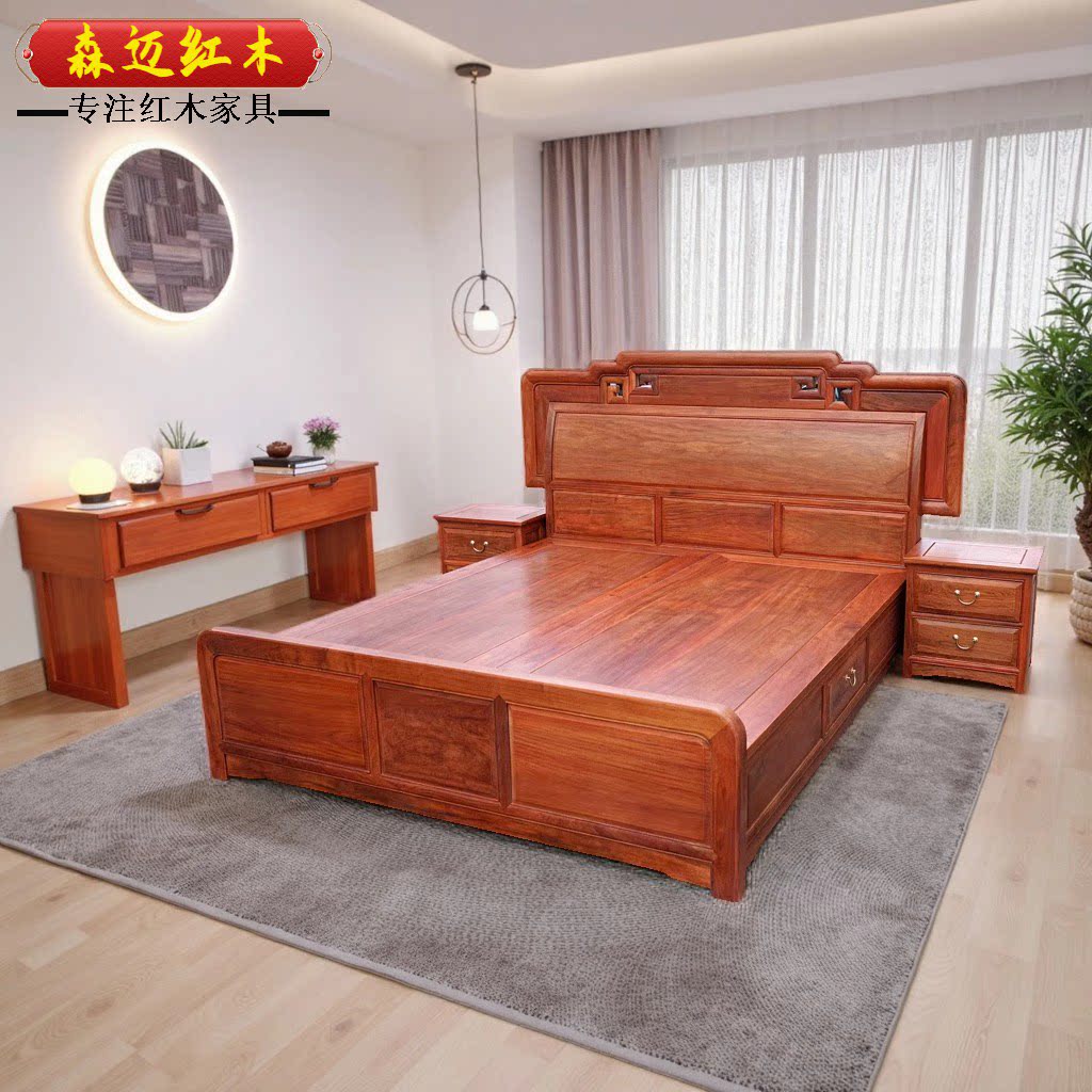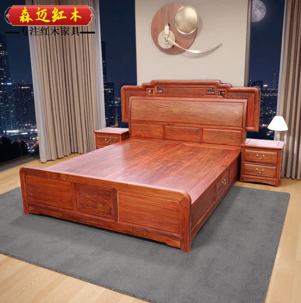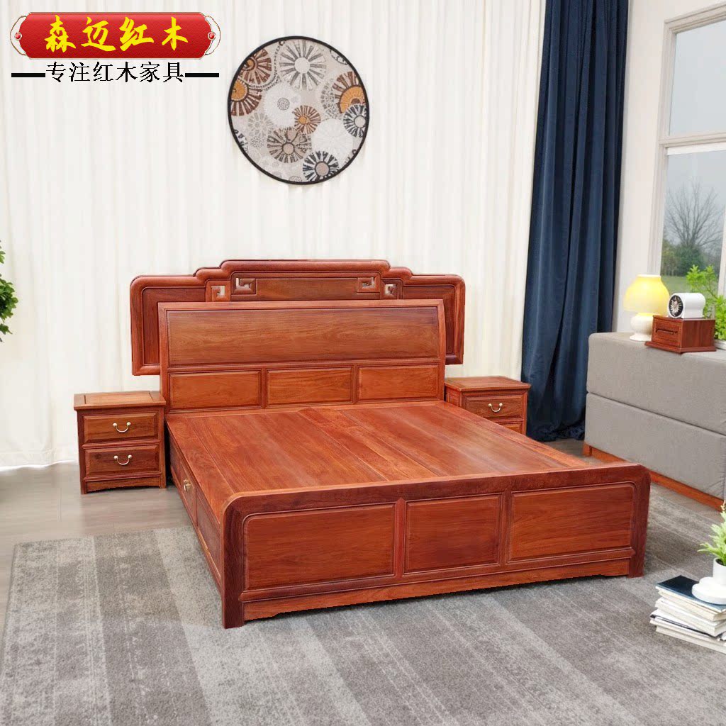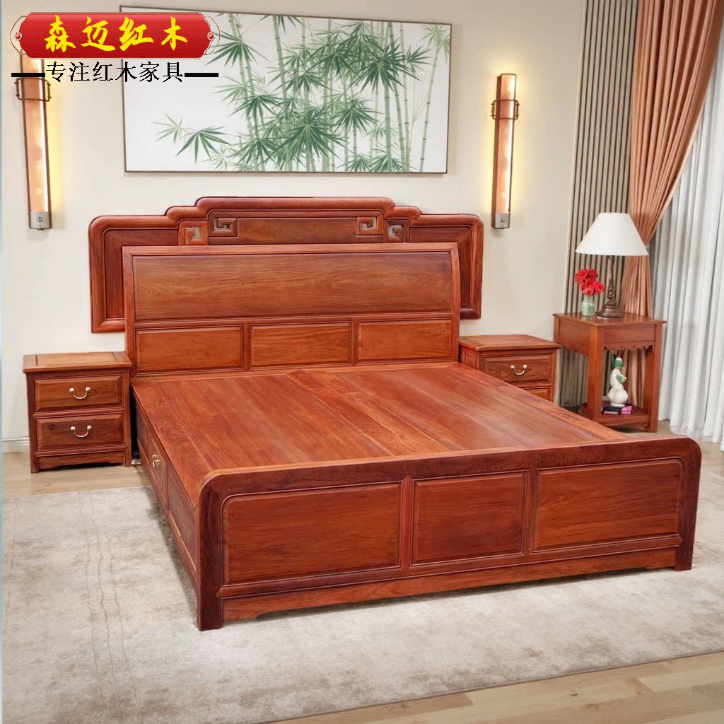 森迈红木床加厚独板材质高档