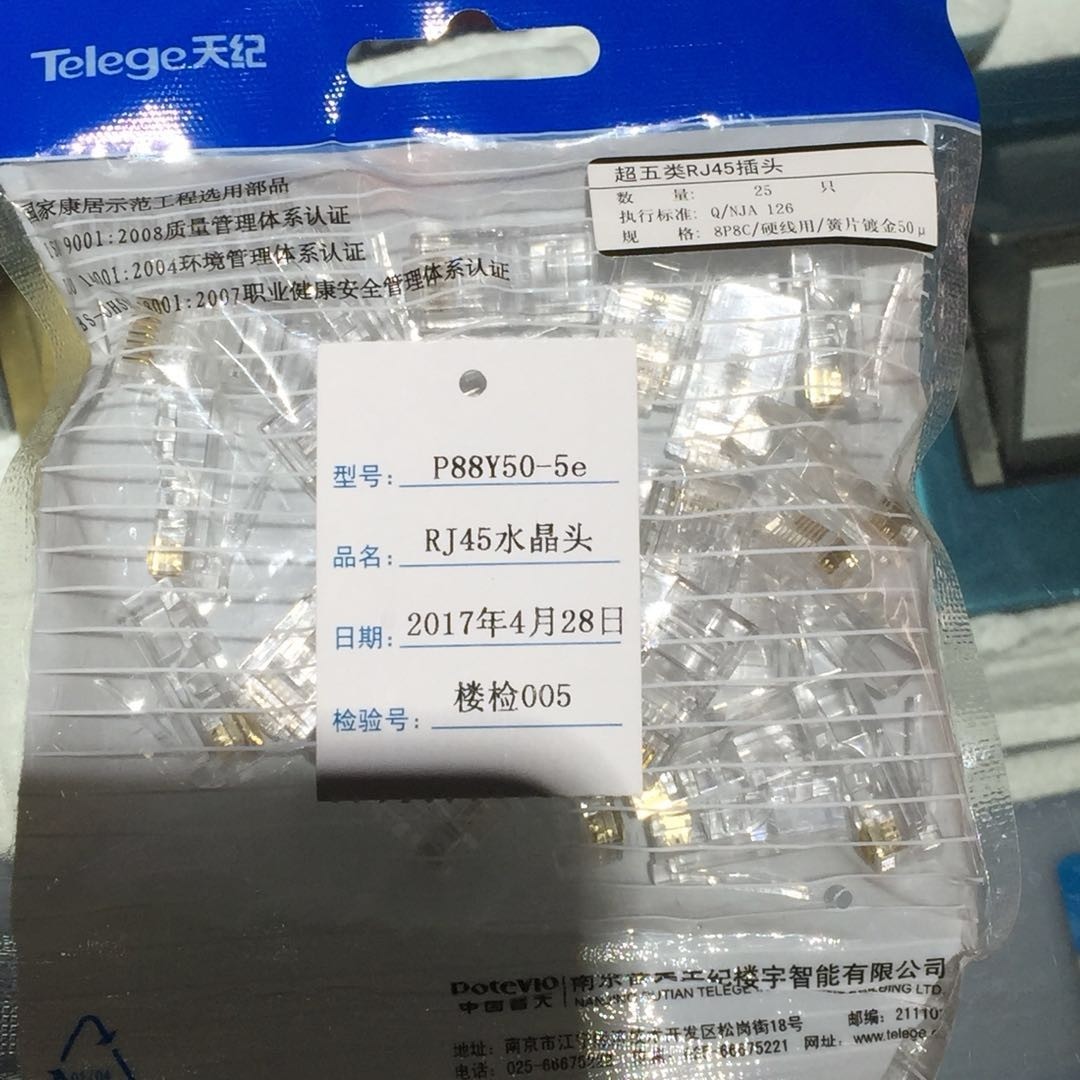 中国普天南京普天天纪超五类非屏蔽水晶头镀金脚一只价格