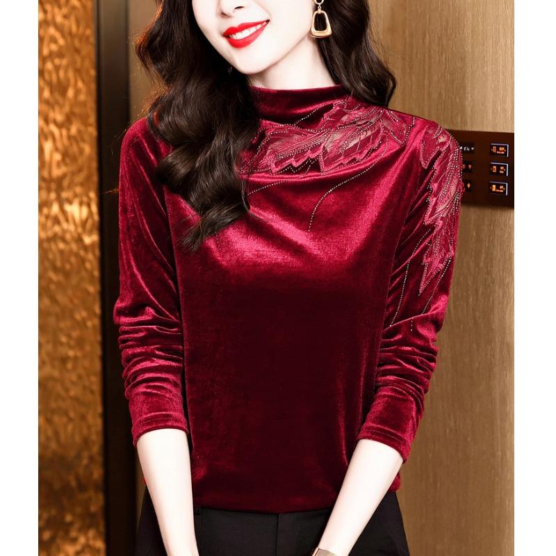秋冬金丝绒女上衣内搭蕾丝打底衫2025年新款长袖T恤高贵洋气1012z